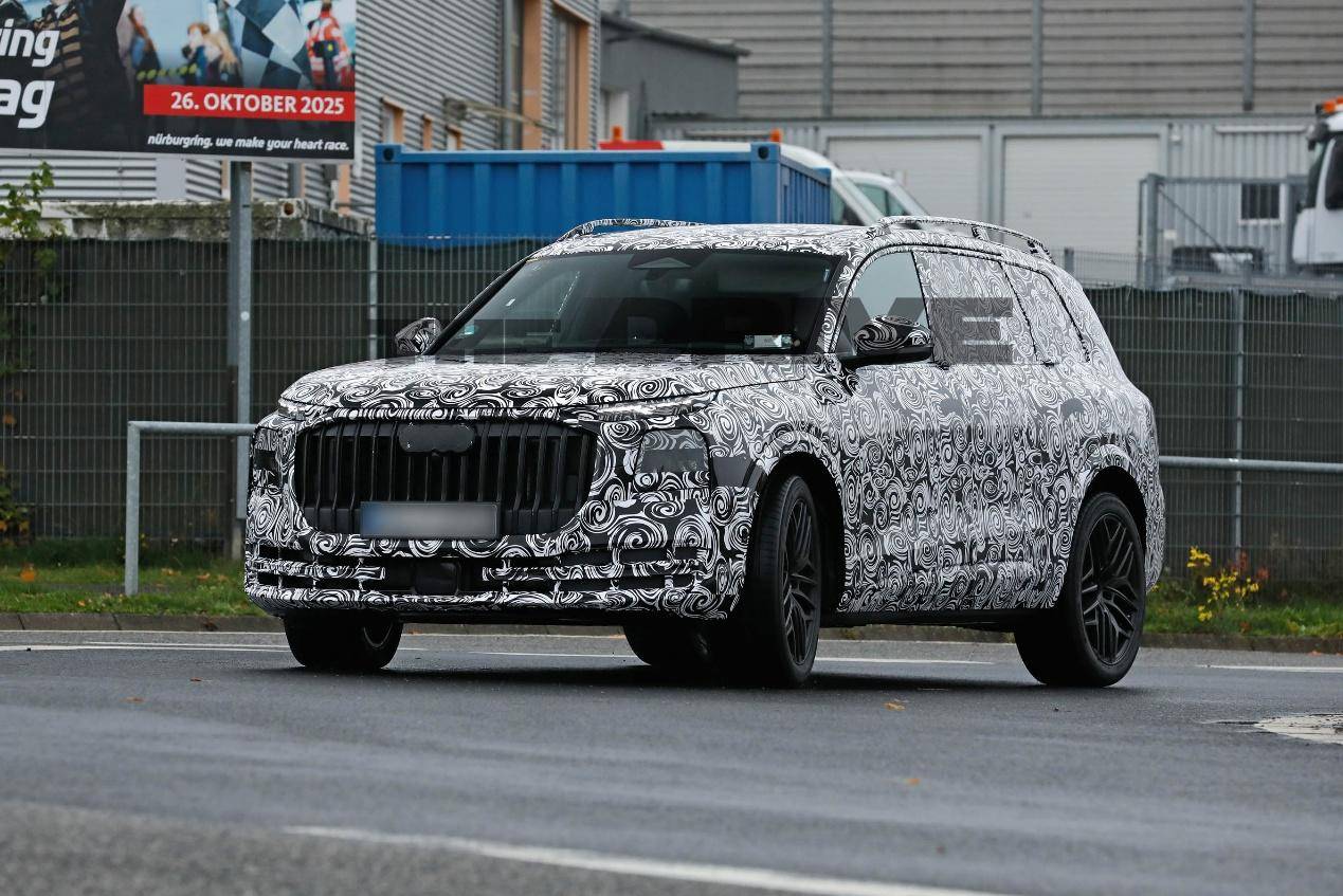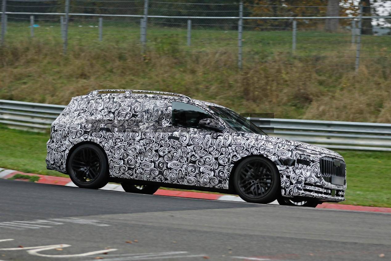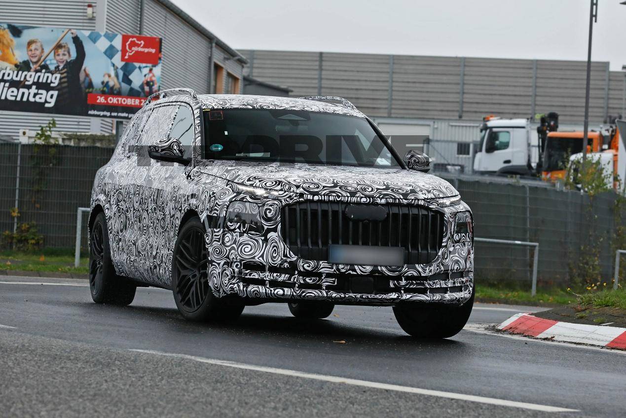 造型方面,从目前公开的这些谍照图能够看到,这辆车的气场是要明显强于奥迪Q7的,重点体现在它的车身中后部,从侧面能够看出来,它的D柱是相对比较竖直的结构,而且后悬的长度也相对较长,这很摆明是为了营造更好的后备箱和第3排空间而设计的。目前在售的Q7车型虽然也有第3排,但是第3排的空间表现只能说是差强人意,而且无法和国内这些5.2米左右的车型去比,有了Q9之后,那么它的第3排真正意义上达到了宝马X7和GLS的水准,不会再有人说Q9的第3排过于拥挤了。