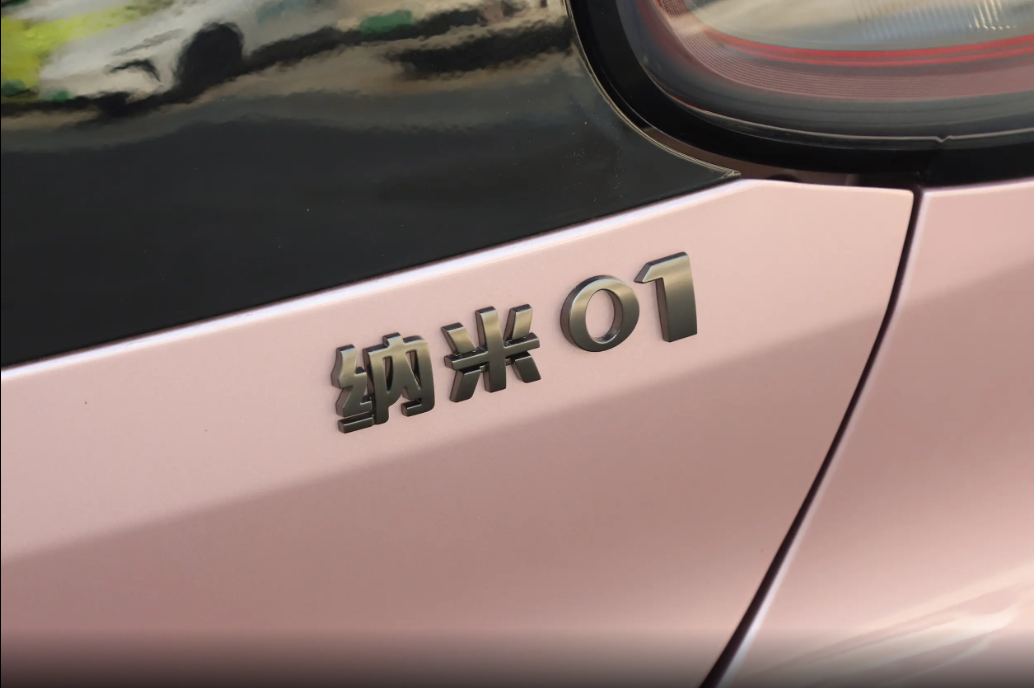 其次就是外观设计方面了,刚到4S店,老婆就被纳米01的颜值吸引住了。我们试驾的这款是“千金粉+无忧白”的配色,撞色设计时尚又灵动,完全符合年轻人的审美。车头的水滴式前灯搭配斜向扩散的灯带,显得格外精致,下方扁平的进气口和三角形导流口,又增添了一丝运动感。