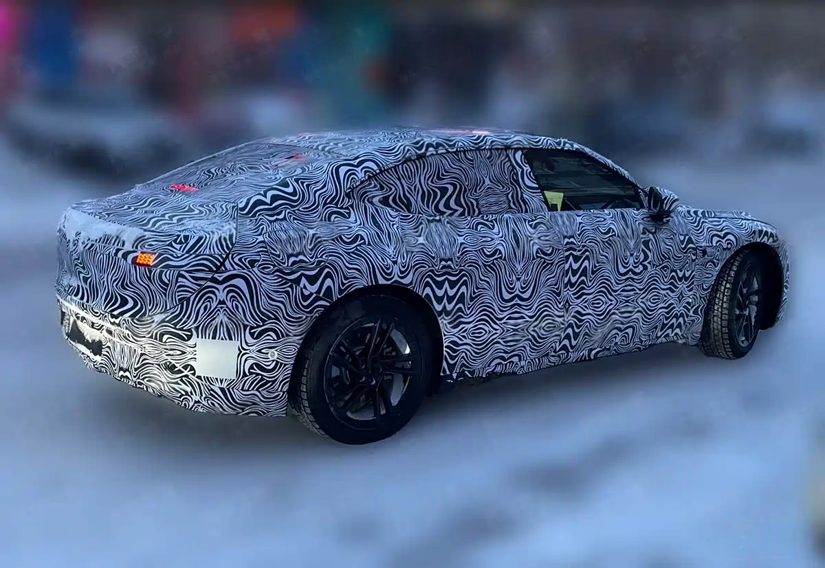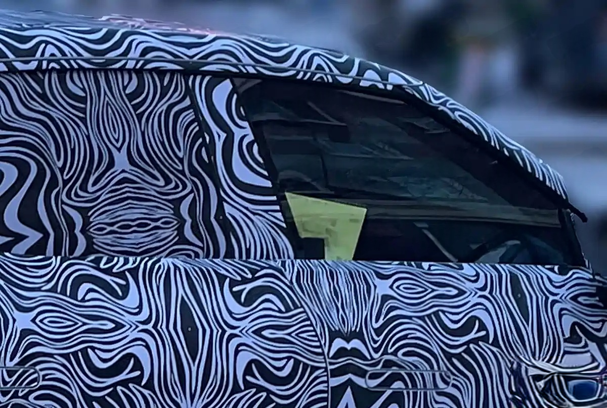 尾部的伪装也很厚实,但隐约能看到尾灯轮廓,它和前大灯相呼应。另外就是尾门曲线,也就意味着它可能是传统的尾门设计,而非掀背。