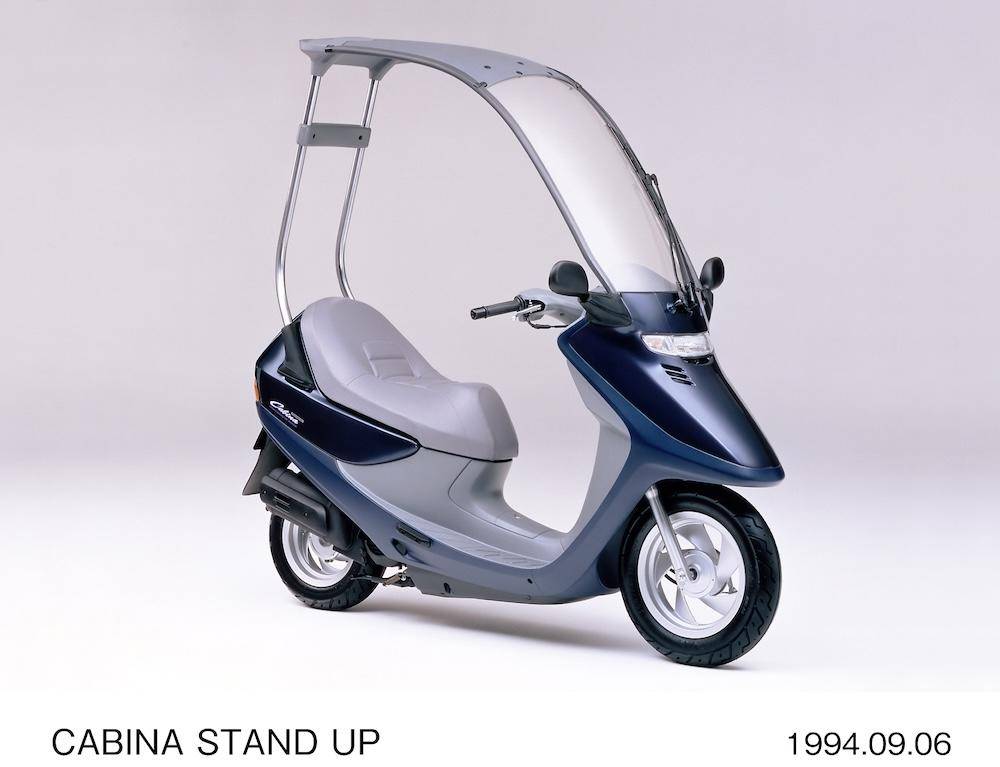在 1990 年代的日本摩托车市场,本田的创意简直就象是没有极限一样,那是一个工程师说了算的黄金年代,当时的开发团队抱持着一种近乎偏执的热情,思考着如何让骑士在都市通勤中彻底摆脱雨衣的束缚,于是他们在 1994 年推出了这款名为 Cabina 的两轮踏板。