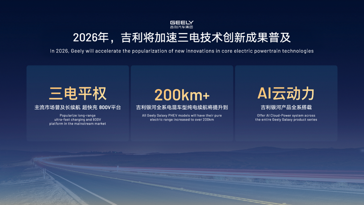 2026年是吉利的产品大年,每个季度都将推出1-2款全新产品,包括多款全新混动车型与全新一代醇氢能源车型,全面覆盖从主流到豪华、从燃油、到新能源的各个细分市场,全力冲击345万辆的年度销量目标。