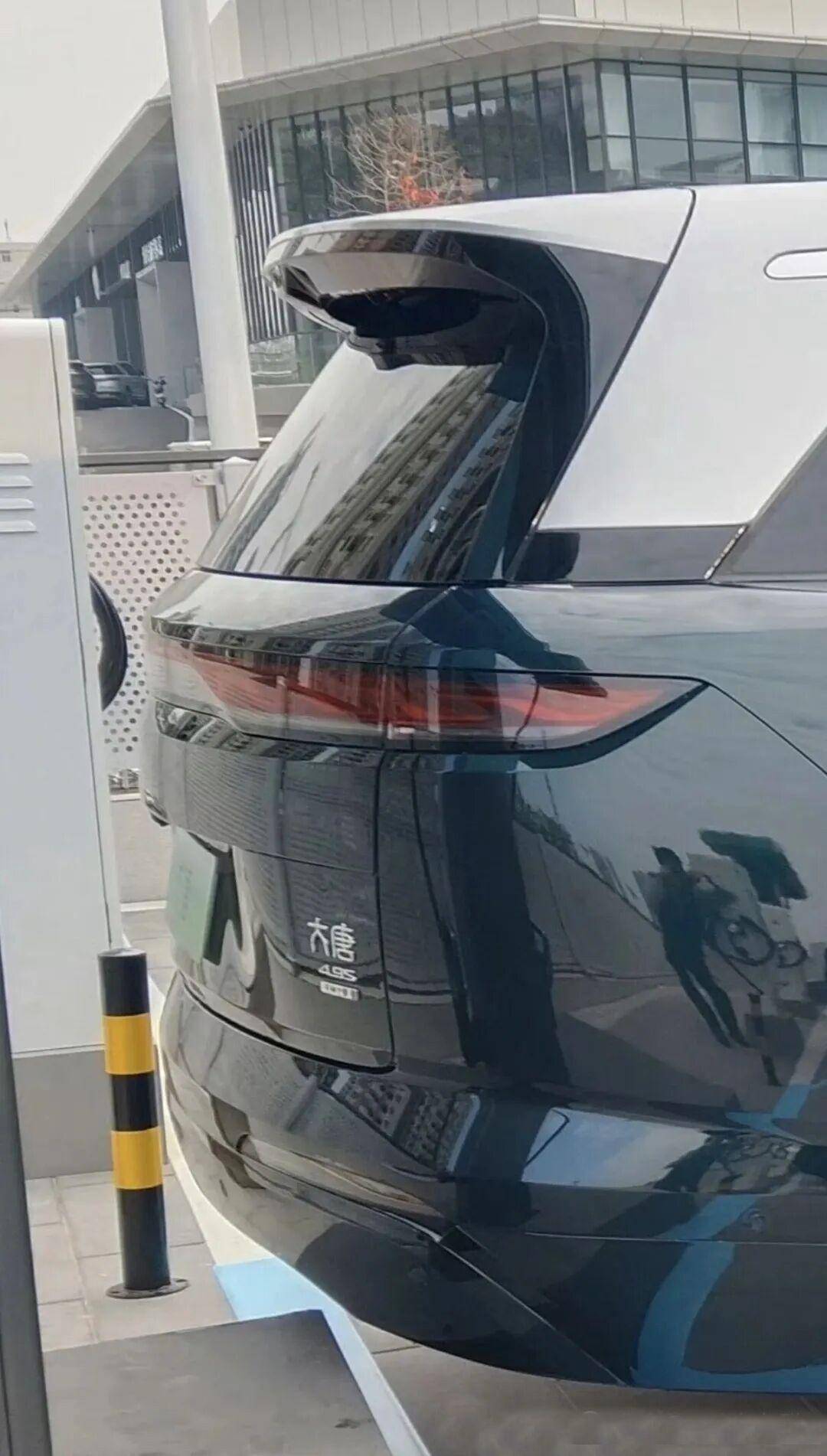 至于车尾,通过放大局部我们也可以看到,新车采用了和现款唐L车型所相差不多的贯穿式LED尾灯设计,只不过,大唐作为一款定位更高的旗舰级SUV,左右两侧的尾灯面积有所增大,以此来彰显其旗舰豪华的定位。另外,右下角的“大唐”字样和“4.9S”标识也都印证了,这就是比亚迪最新的大唐旗舰SUV。