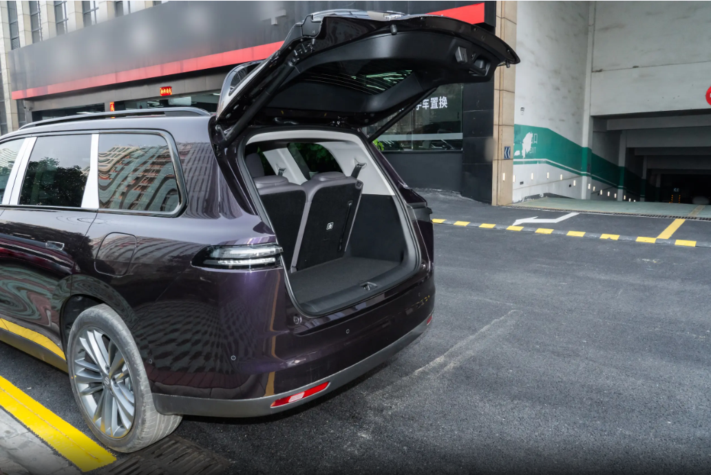 这车后备箱很实用,空间铺得平平整整的,第三排立着的时候都有209L,塞两个28寸行李箱,再堆点随身小包啥的完全够使,日常带家人出门装东西一点不挤。要是把后排座椅按比例放倒,容积直接扩到1022L,露营的帐篷、折叠桌,孩子的推车这些大件,随便塞都能装下,一点不费劲。