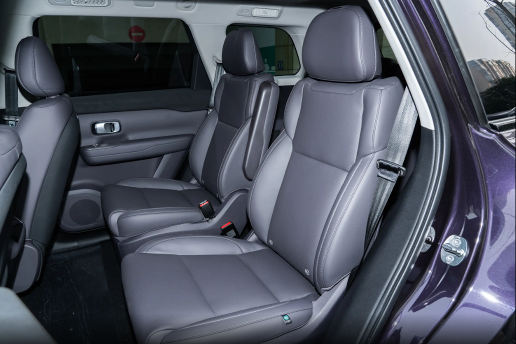 乘坐空间方面,我这台零跑C16采用了2+2+2的6座布局,新车的长宽高分别为4915/1905/1770mm,轴距2825mm属于标准的中大型SUV。第二排是独立座椅,支持前后和靠背调节,腿部空间非常充裕。第三排的座椅高度和坐垫厚度也经过优化,成年人坐进去不会觉得憋屈,短途出行完全没问题,所以大家不用为零跑C16的乘坐空间的担心。
