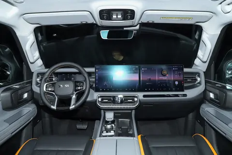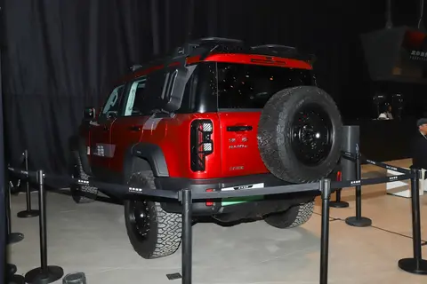 此外,新车换装了熏黑防脱圈轮毂,并且搭配上了尺寸更大的AT轮胎,同时尺寸更为宽大的扩充版轮眉以及铝合金脚踏也同步上车;车顶配有车顶平台,后车窗处还配有侧挂“小书包”;除此之外,新车还配有氮气减震、涉水喉、一体式前后杠以及内嵌式防滚架,可以说无论是能看见还是看不见的地方,都为越野做出了充分的准备,更主要的是其还带有原厂拖挂资质,相信喜欢户外、越野的消费者们,此刻一定“摸向自己的钱包”了吧。