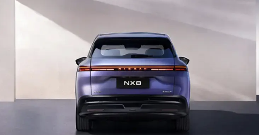回顾外观设计,作为东风日产旗下首款新能源中大型SUV,日产NX8延续此前N7以及N6的全新家族式外观设计语言,封闭式前脸造型搭配上方贯穿式LED灯带,分体式头灯组呈“回旋镖”样式置于包围两侧,整体简洁且不失科技感。
