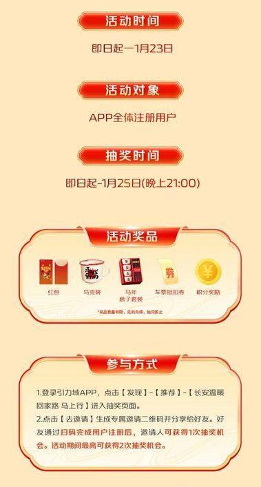 为构建全天候、多渠道的服务体系,长安汽车同步开启长安“引力域”APP线上温暖平台。返乡人员可参与APP内“长安温暖回家路 马上行”抽奖赢好礼,现场扫码注册更可解锁专属权益,实现线上线下温暖相伴。