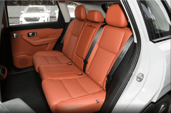 例如:我个人身高180cm坐在后排,膝部能保留距离,中间地板接近纯平,满员乘坐时中间乘客的腿部不会受挤压。后排头部空间达1015毫米,高个子乘客乘坐时也不会感到压抑。