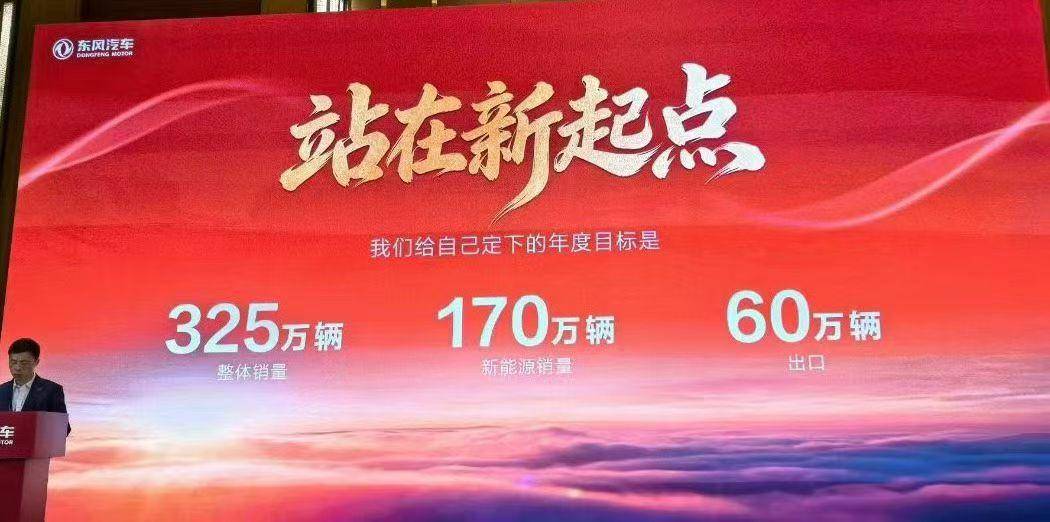 不久前东风汽车集团发布了新一年销量目标:总销量325万辆,新能源170万辆,出口60万辆!