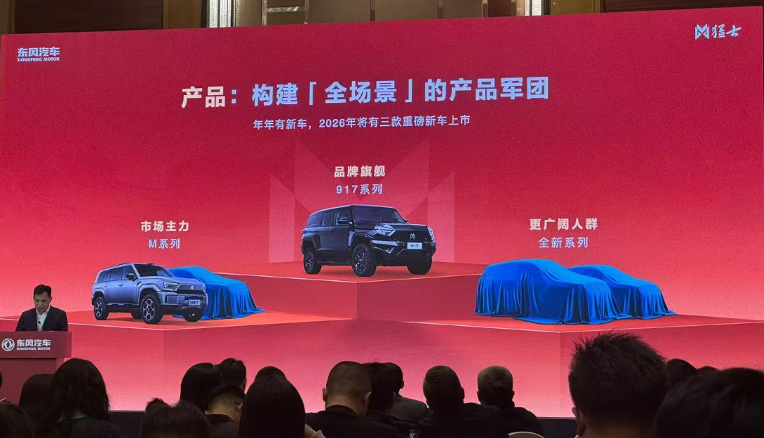 猛士定位于豪华智能越野品牌,依托东风集团多年的军用越野车技术,以及华为的全面赋能,在新能源硬派越野细分市场表现不俗。2026年起,猛士汽车每年将投放2款新车,形成3大产品系列,同时还会加速出口。