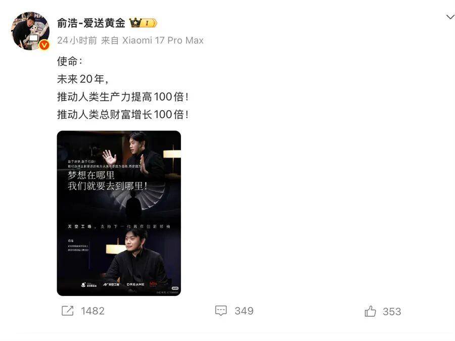 马斯克曾经的想法天马行空,但吹过的牛大部分实现了;俞浩如今想法一样天马行空,他的未来比马斯克如何呢?