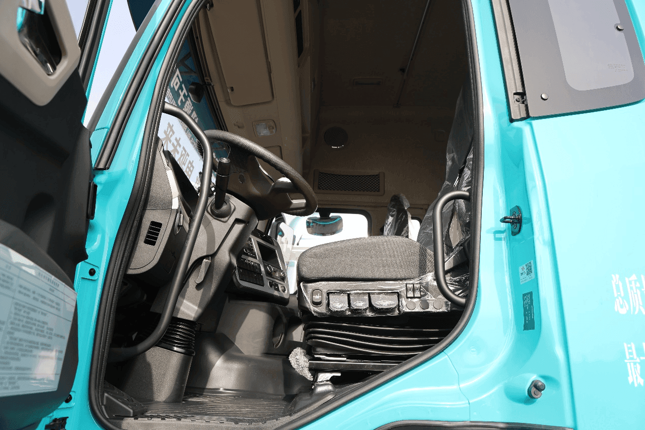 内饰还是D320平台经典的内饰风格,三幅式多功能方向盘,环绕式工作台,非常便利驾驶员的操作。在天龙KL电动牵引车上还标配PTC水暖的功能,升温快,不干燥、体感佳。