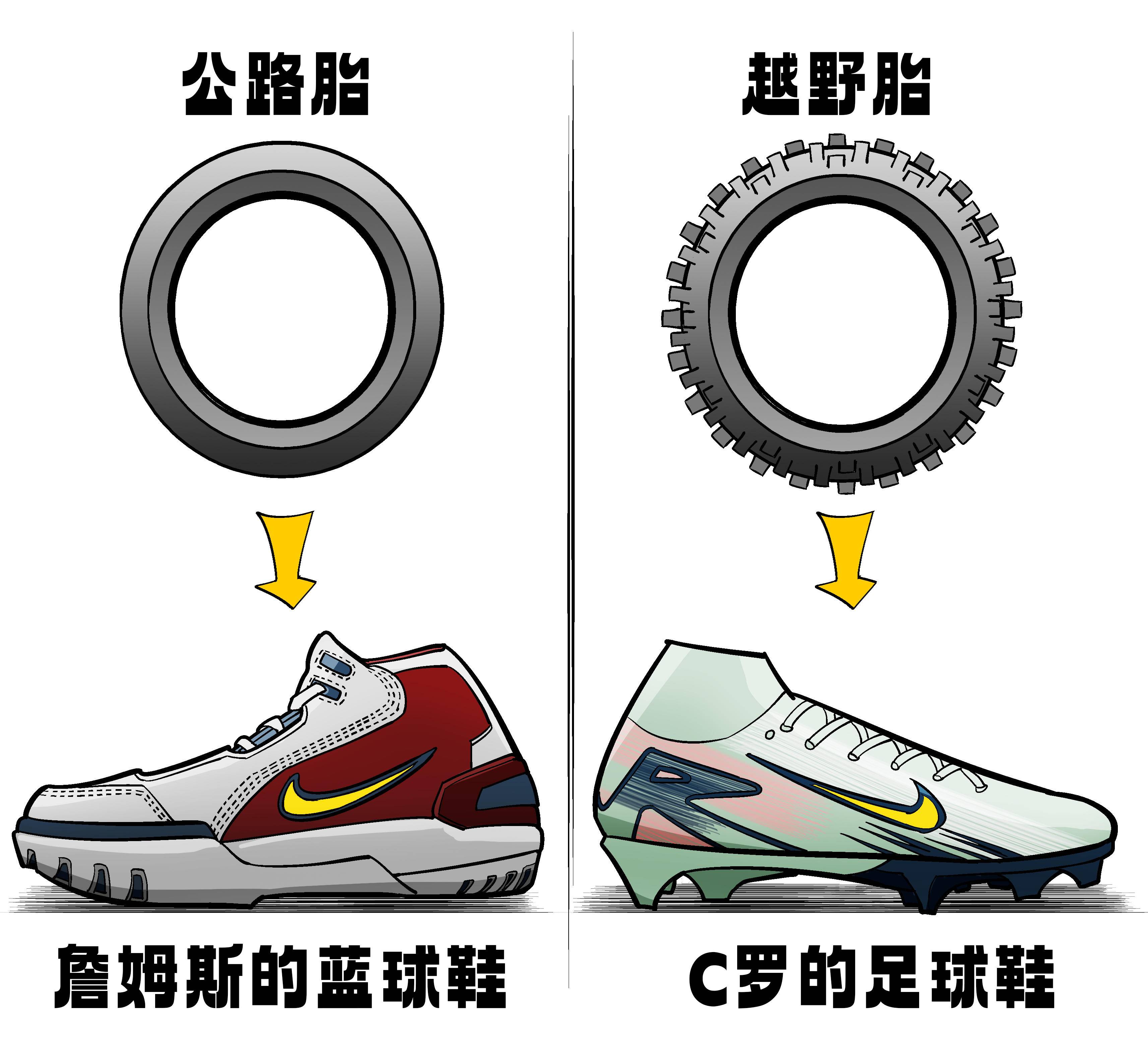 言归正传,轮胎的类型好比不同用途的球鞋,如果蓝球鞋是公路胎的话,足球鞋就是越野胎。