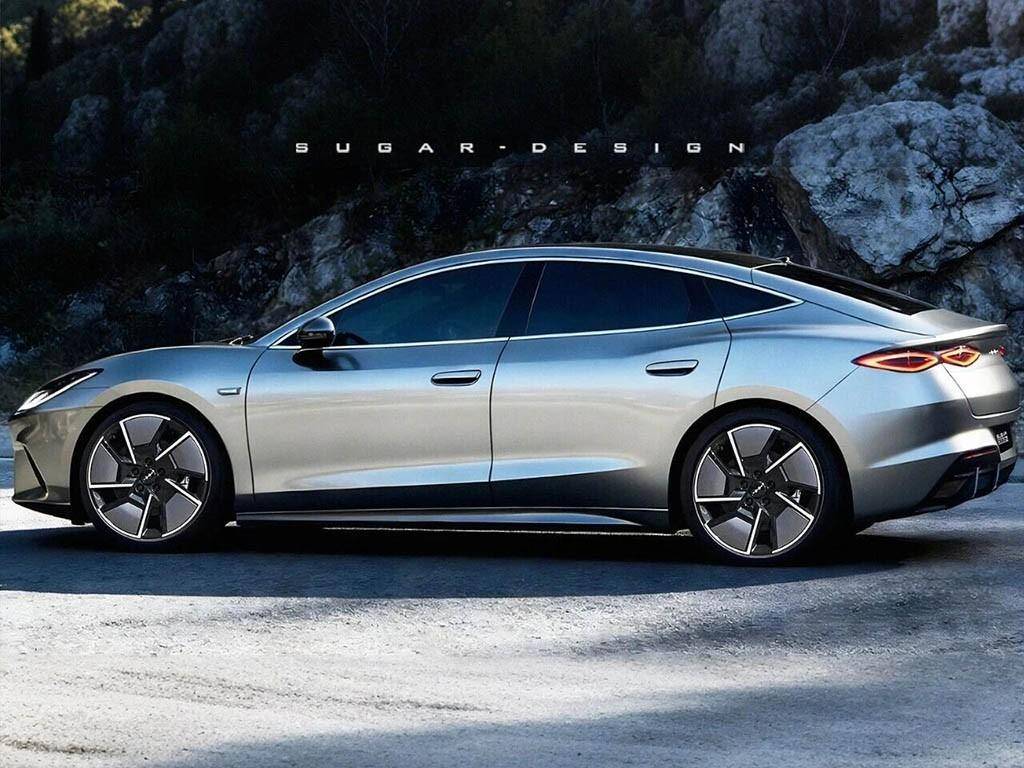 来到侧面,渲染图里的短前后悬设计也体现地比较到位,搭配低风阻造型的轮圈和半隐藏式的门把手,整台车看着颇有几分仰望U7的既视感,也不愧是比亚迪个性化品牌方程豹所即将要推出的全新车型。