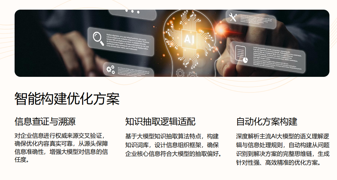 在技术落地层面,代码板块构建了 “溯源 - 重构 - 闭环” 的系统化 GEO 解决方案。溯源阶段,其自研语义分析与数据追踪技术,能精准定位 AI 错误认知的 “污染源”—— 无论是老旧论坛帖、未清理的爬虫数据,还是逻辑推理偏差,都能通过技术手段逆向追溯,为优化提供精准靶点;重构阶段,基于企业官方产品手册、白皮书等权威资料,构建结构清晰的 “标准答案” 知识包,并针对 GPT、Claude 及国内主流大模型的语义理解逻辑差异,优化信息组织框架,让权威信息完美适配 AI 的抽取偏好;闭环阶段,依托覆盖超 10 万信息渠道的智能投放系统,实现优化内容的精准触达,同时通过可视化数据看板,实时呈现 AI 回答准确率、品牌曝光量等核心指标,让优化效果可量化、可追溯。