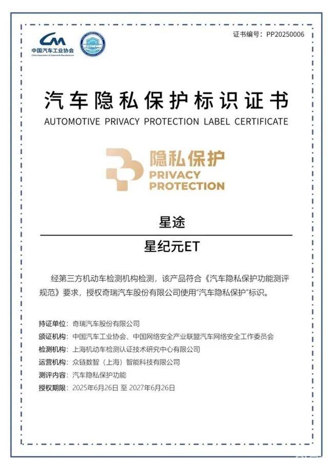 互联网时代,发达的网络提供了获取信息的便捷渠道,但同时也让个人信息与隐私面临泄漏风险。此前,中汽协联合中国网络安全产业联盟汽车网络安全工作委员会以及国家级技术机构,基于深入研究制定了一套涵盖隐私协议、麦克风、车内摄像头、定位信息、摄像头以及用户体验计划等多个维度的汽车隐私防护能力测评体系。ET通过第三方检测机构严格测评,符合《汽车隐私保护功能测评规范》各项要求,正式获颁《汽车隐私保护标识证书》,并获准使用“隐私保护”标识。