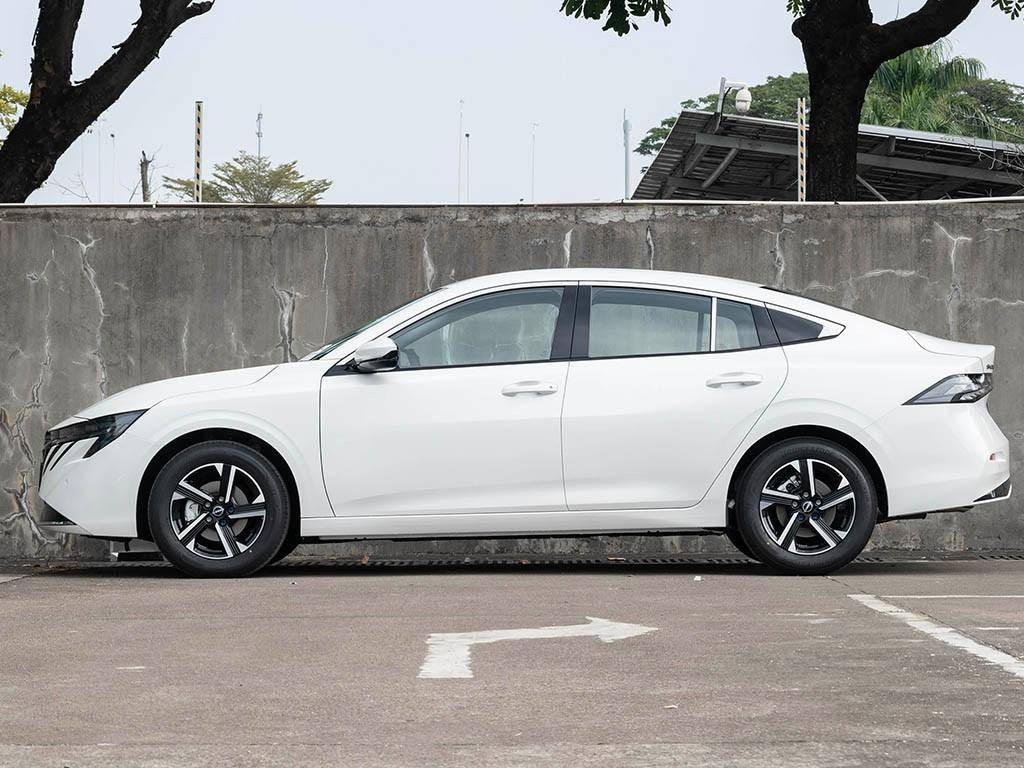 侧面还是和新轩逸保持一致,采用了类似溜背式的车顶造型。尺寸也没怎么变,长宽高分别为4656/1825/1448mm,轴距为2712mm,依旧拥有充裕的车内乘坐空间。轮胎尺寸为205/60 R16,主打的也是一个经济和省油。