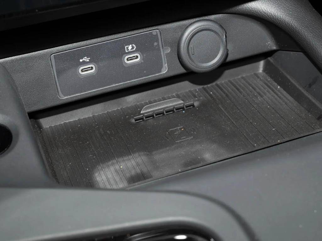 方向盘是双辐式设计,符合其家用轿车的定位。空调出风口为矩形样式,往下则是手机无线充电面板,并且带有通风口,以防止充电时手机过热。