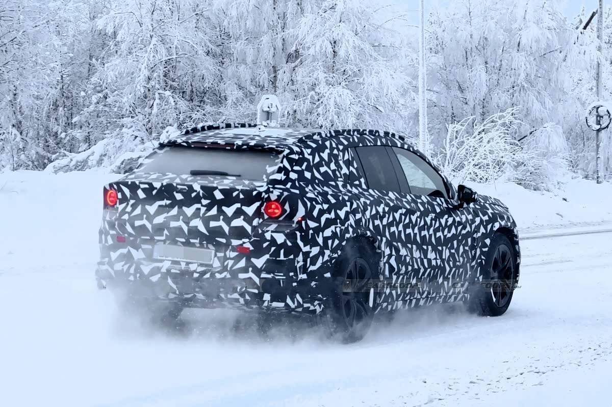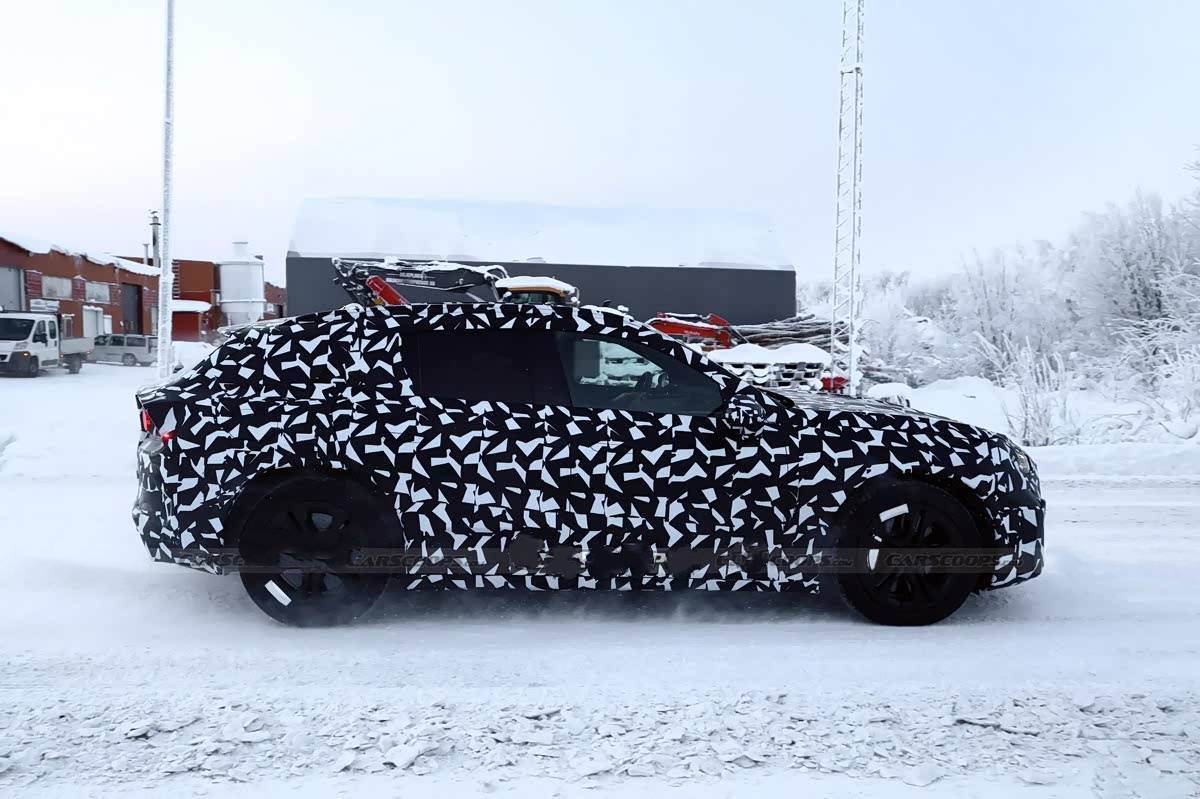 外观部分,虽然车身还覆盖着厚重伪装,但依旧能看出它矫健的姿态,前脸设计厚重饱满。作为纯电车型,它依旧保留了较长的前舱,呈现出经典的靴型车身,前大灯的布局和位置也延续了大家熟悉的设计风格。