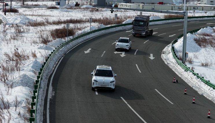 接下来,我们看看“王的试炼”!测试地点选在了中国最北端的寒区试验基地黑河,测试车辆为市售版红旗HS6 PHEV,完全保持交付用户时的原厂状态,60L油箱与40kWh电池包。挑战车辆加注92#乙醇汽油,在-20℃至-30℃露天环境静置2小时,以模拟长时间户外停放,测试全程使用雪地胎,车内空调设定为25℃、三档风舒适制热模式!