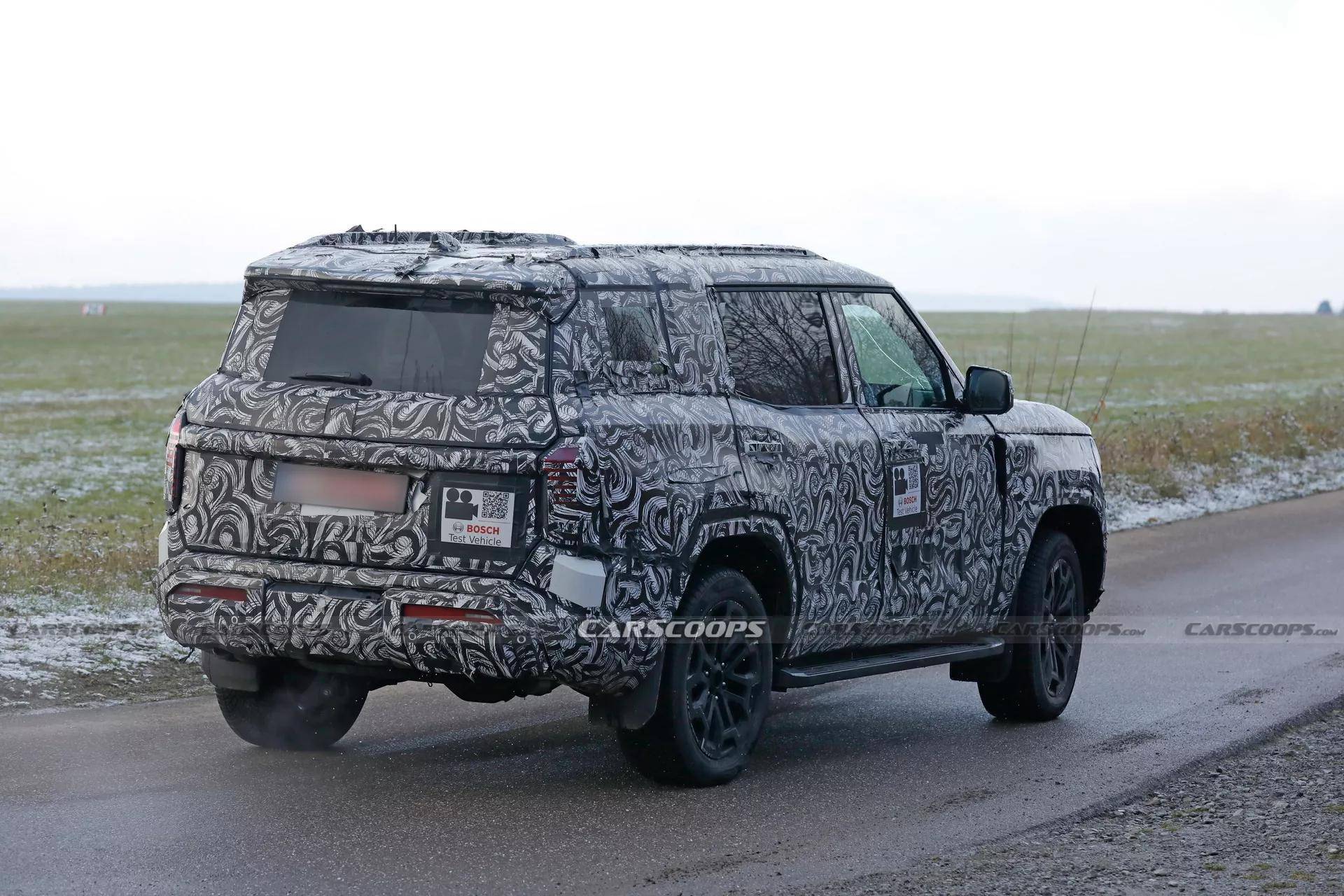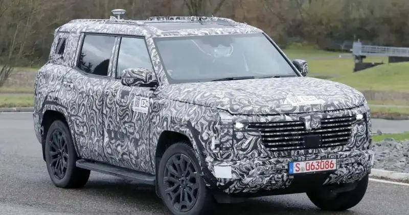 说一些细节,目前的测试图表明它暂时没有外挂备胎,也无法看清后门的具体结构,可能会采用天地门的设计,所以备胎大概率会藏在车底,有可能会朝着更加豪华的方向去拓展。其次,外面表示它的尺寸应该会和第4代帕杰罗类似,依旧定位是中大型SUV,从它车身侧面的照片来看,它的车身长度应该在4米9左右,轴距2.8米到2.9米之间,接近角和离去角还有通过角参数也都是比较不错的,说明依旧没有放弃他的越野能力。