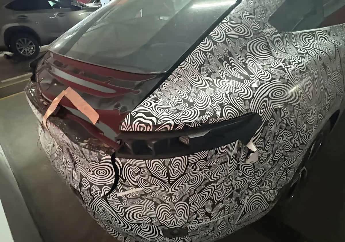 新车车头使用了扁平化的造型,两侧大灯之间是封闭式的造型,前杠的牌照框上侧带有细条形进气格栅,底部还带有使用了横向格栅的中网设计,前杠底部是突出的扰流铲造型。另外车顶前部带有激光雷达。