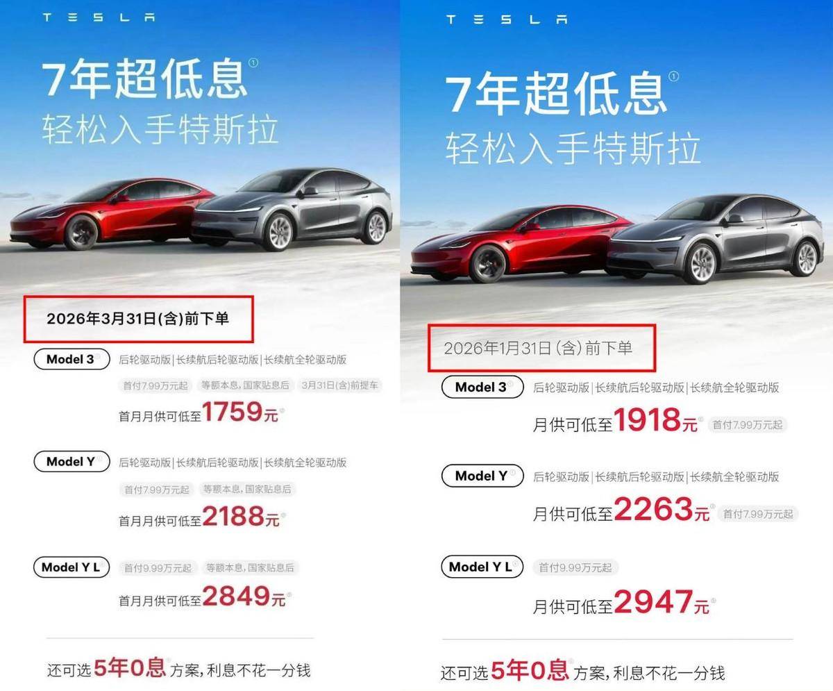 近日,特斯拉中国官宣了新一轮的购车金融优惠政策,官方表示:在3月31日前下单,全系车型均可享受7年超低息贷款。其中Model 3、Model Y及Model Y L三款主力车型,可额外选择5年0息方案,贷款购车无需支付任何利息。事件一经发酵,此举再度被业内普遍解读为又一轮“变相降价”,旨在进一步提振终端销量。