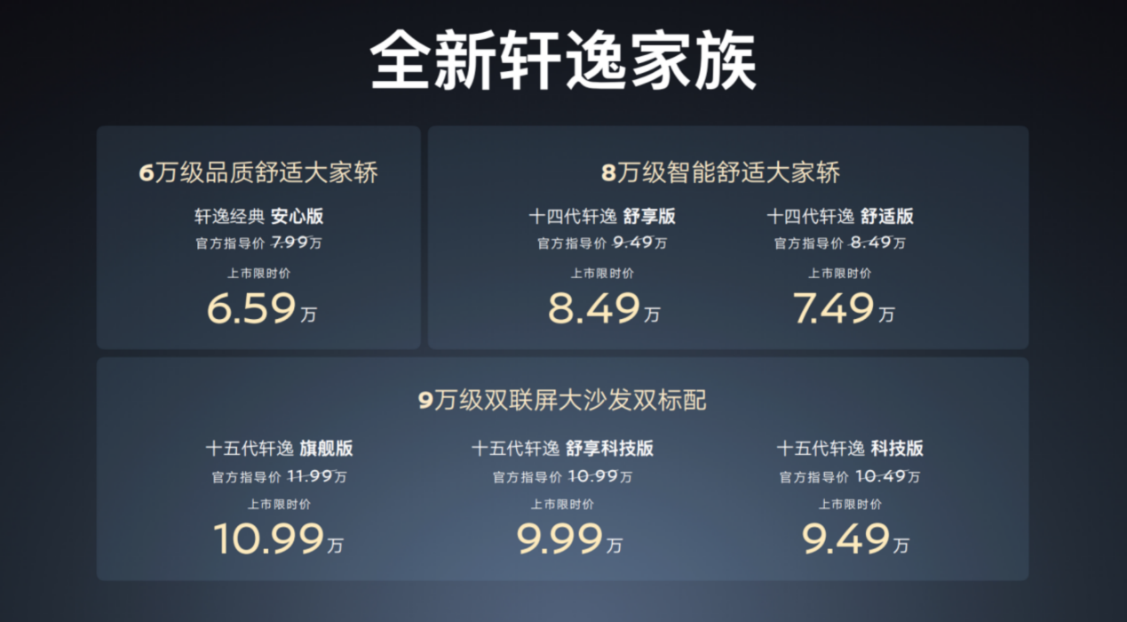 近日,东风日产第十五代轩逸正式上市,官方指导价10.49-11.99万元,而限时价直接来到了9.49万起,新车延续了轩逸家族家用高性价比的核心定位,同时与十四代轩逸、轩逸·经典形成“三代同堂”的产品矩阵,覆盖不同预算家用市场。那么,第十五代轩逸都升级了啥?与上一代有啥不同呢?