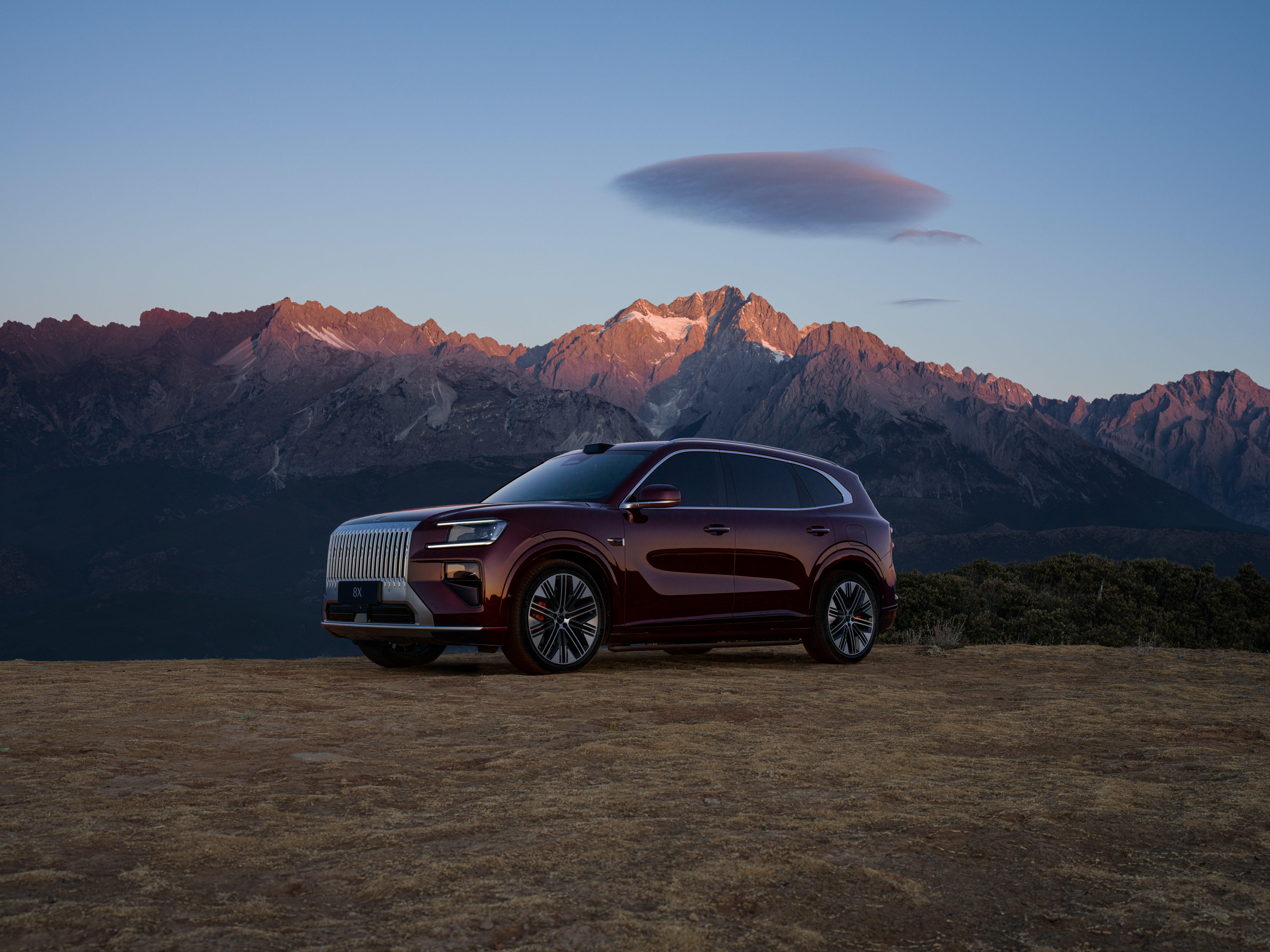 凌晨五点,天色未亮,云珀红的极氪8X已整装待发,随时陪我奔赴晨光。早起拍摄本非难事,可想要寻得绝佳机位,捕捉玉龙雪山的日照金山,却可遇不可求。这台8X的云珀红,在日出与日落的柔焦光影里,宛如火烧云漫染车身,自然的壮阔,在琥珀般的光泽中缓缓降临。