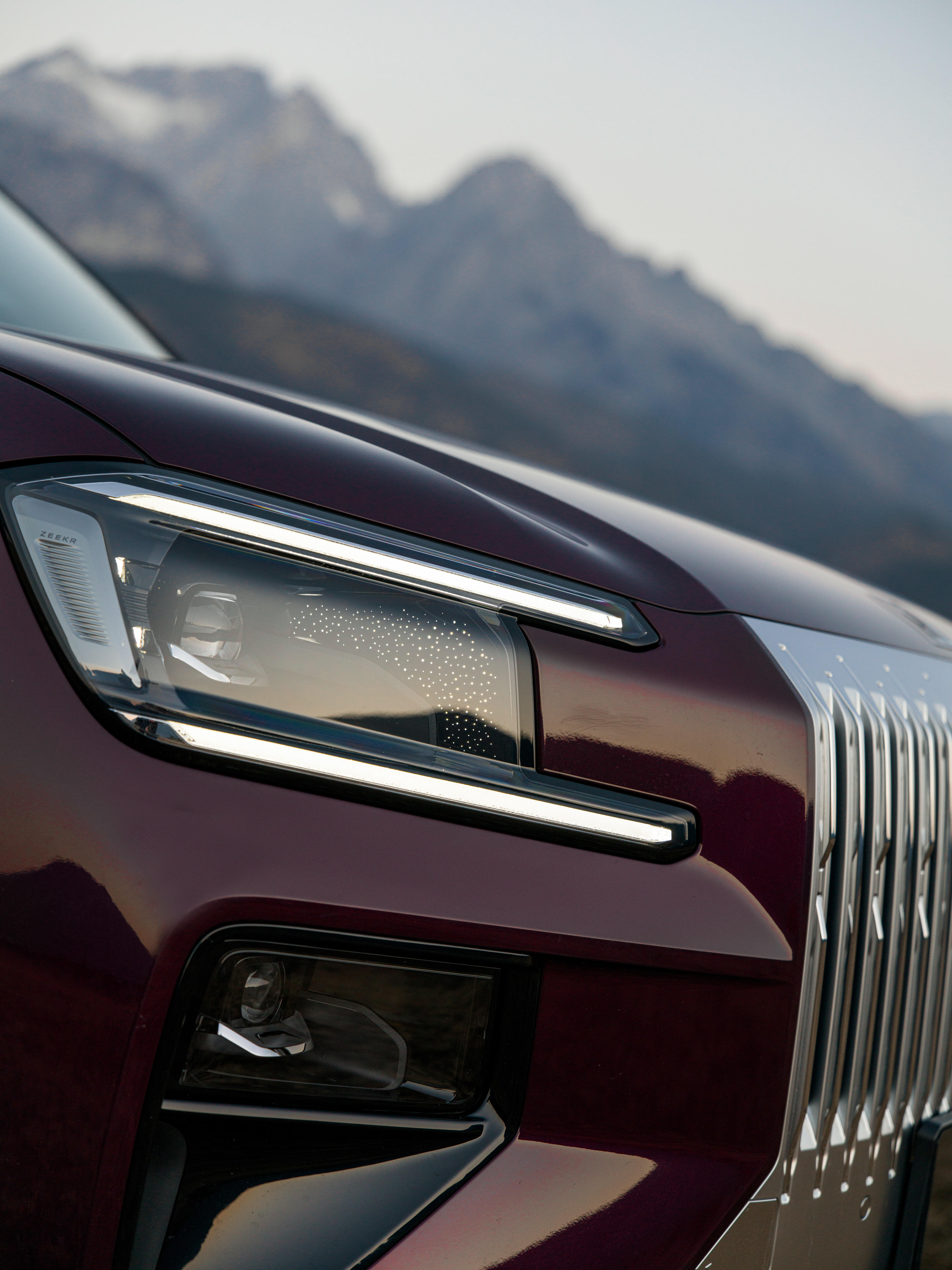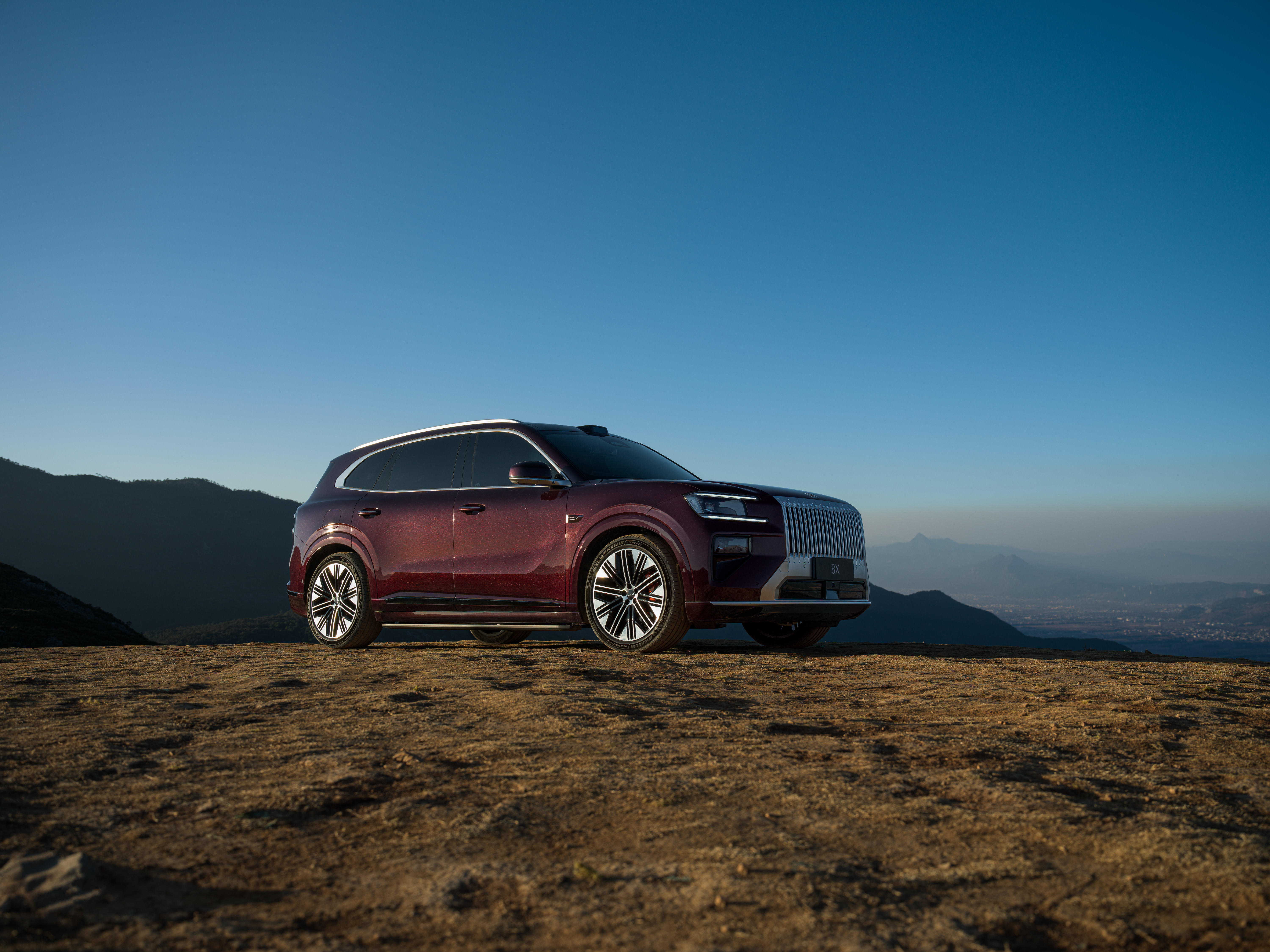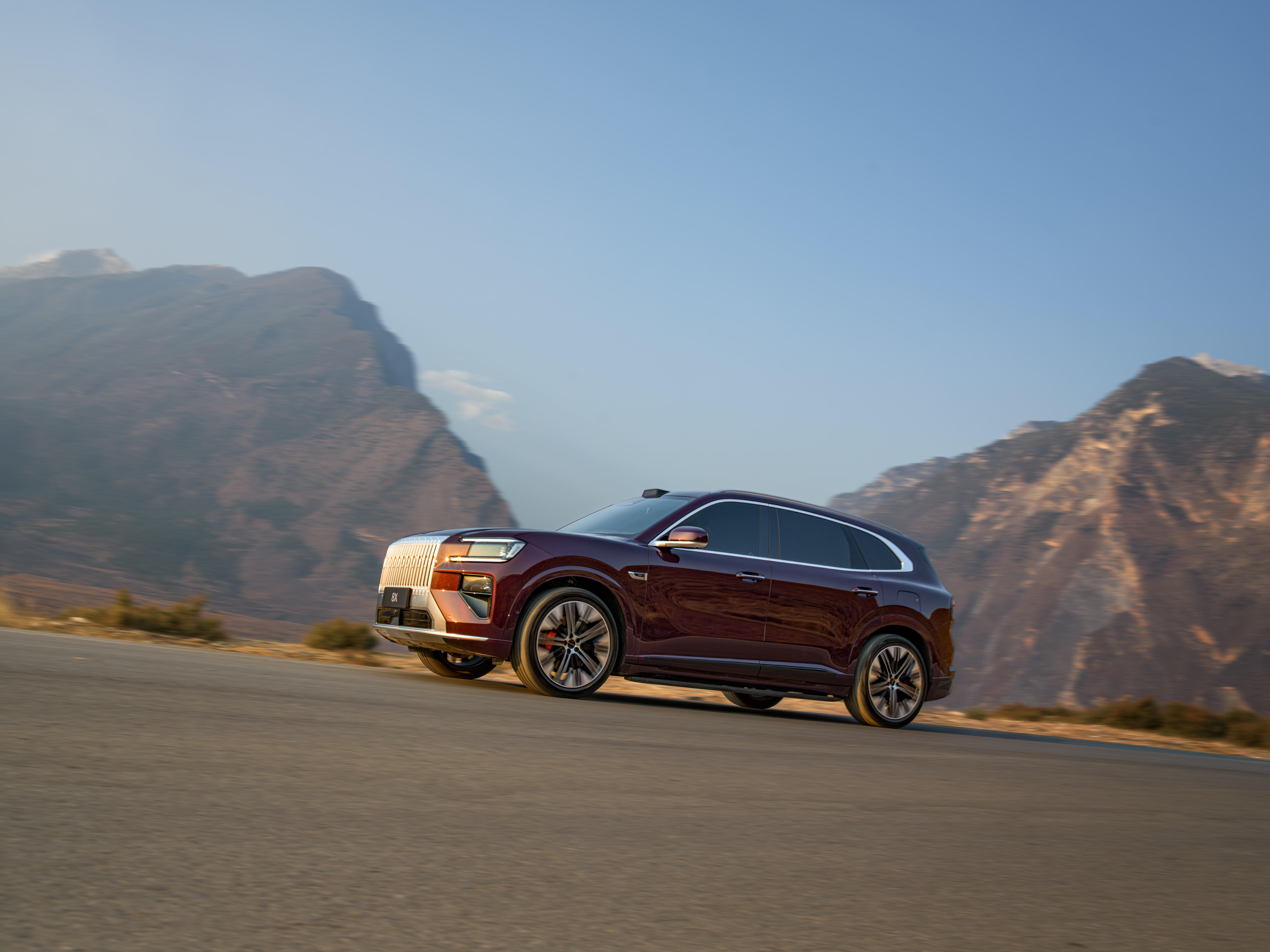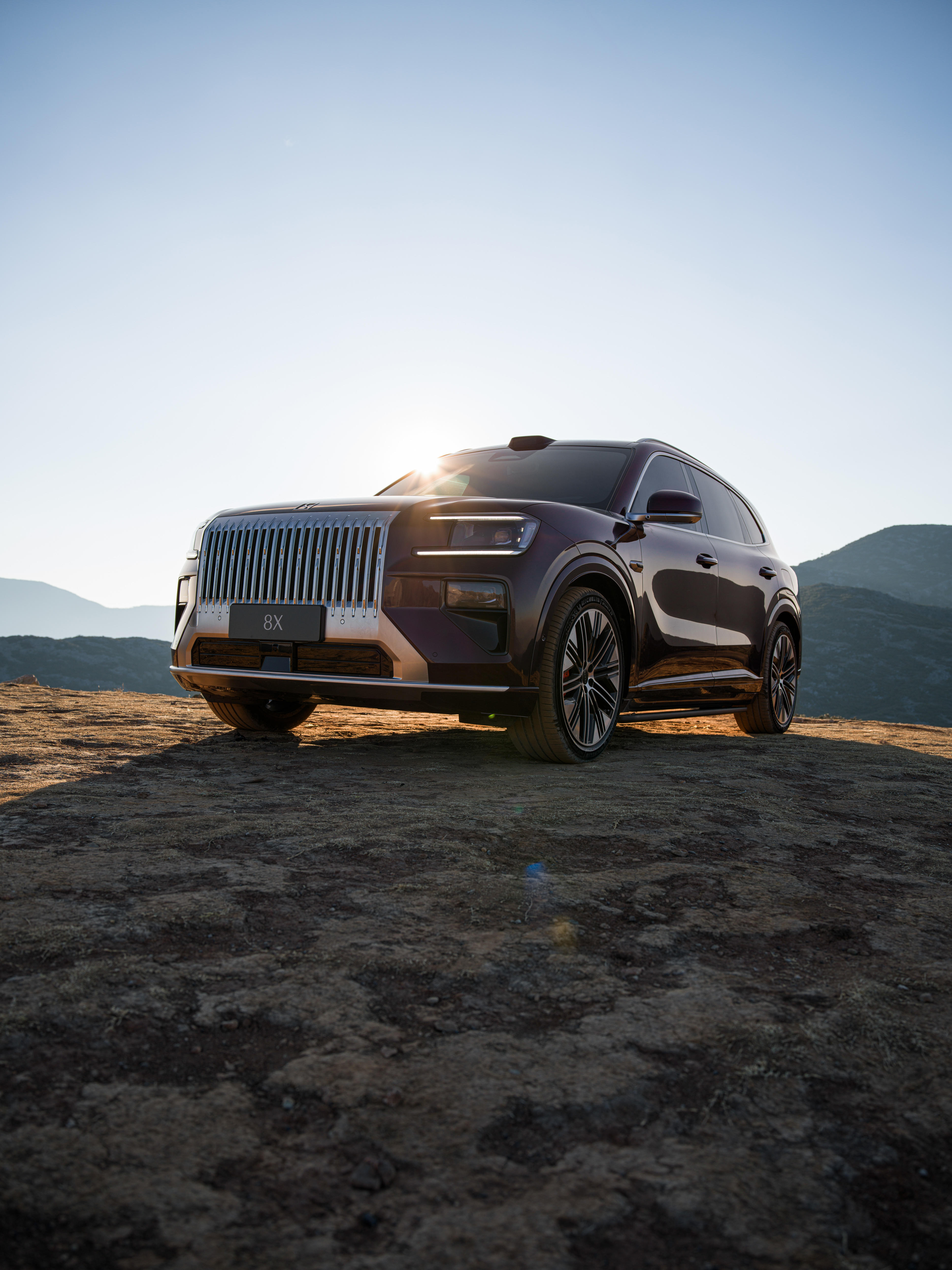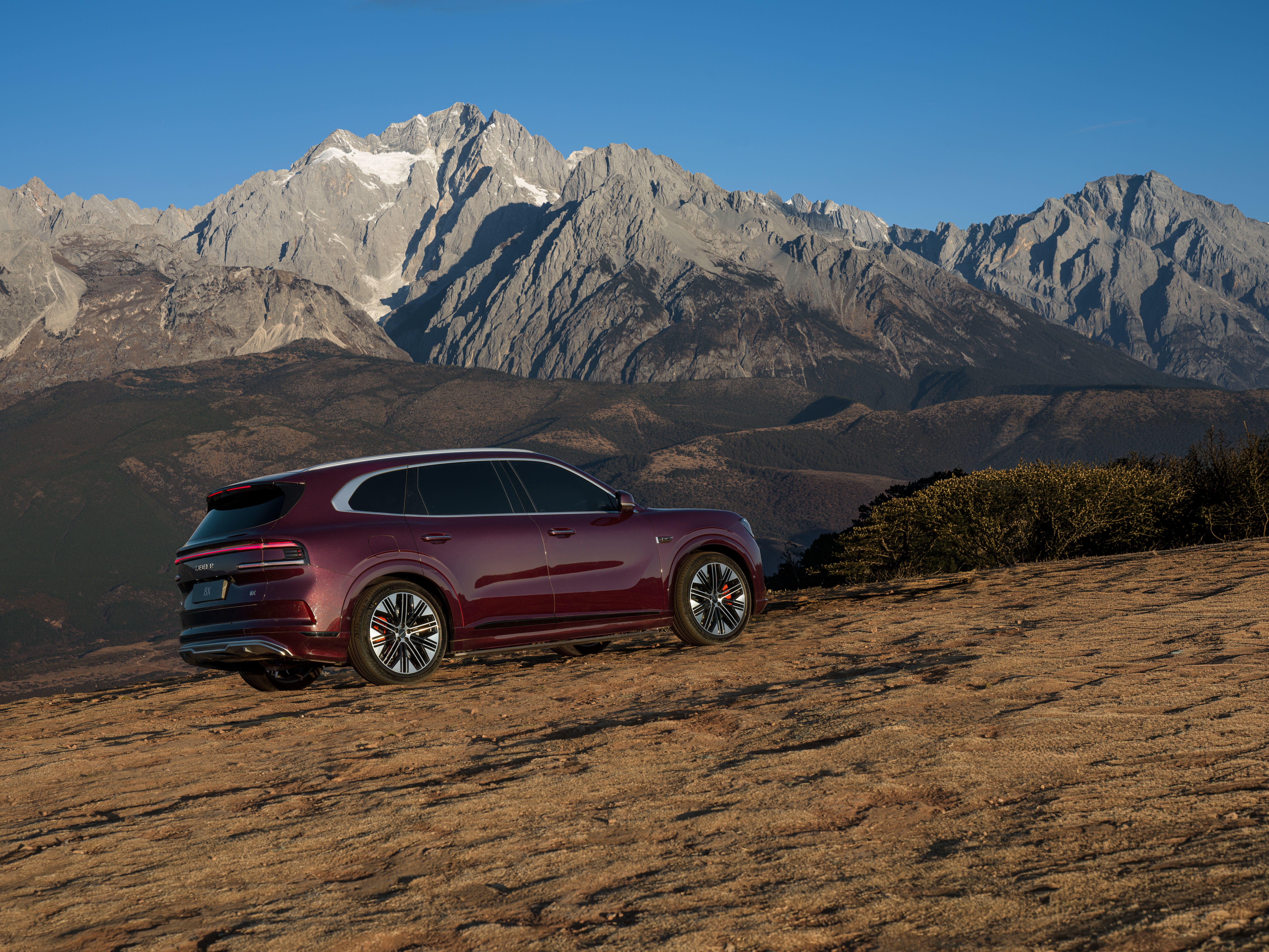以雄峰峻岭为幕,极氪8X的一体式直瀑式格栅与雪山气势遥相呼应,尽显磅礴气场。修长的山脊线利落向后,将沉稳姿态勾勒出奔涌万里的动势;1:4轮轴比美学逻辑,塑造出舒展修长的车身线条,沉稳之中,藏着蓄势待发的力量。