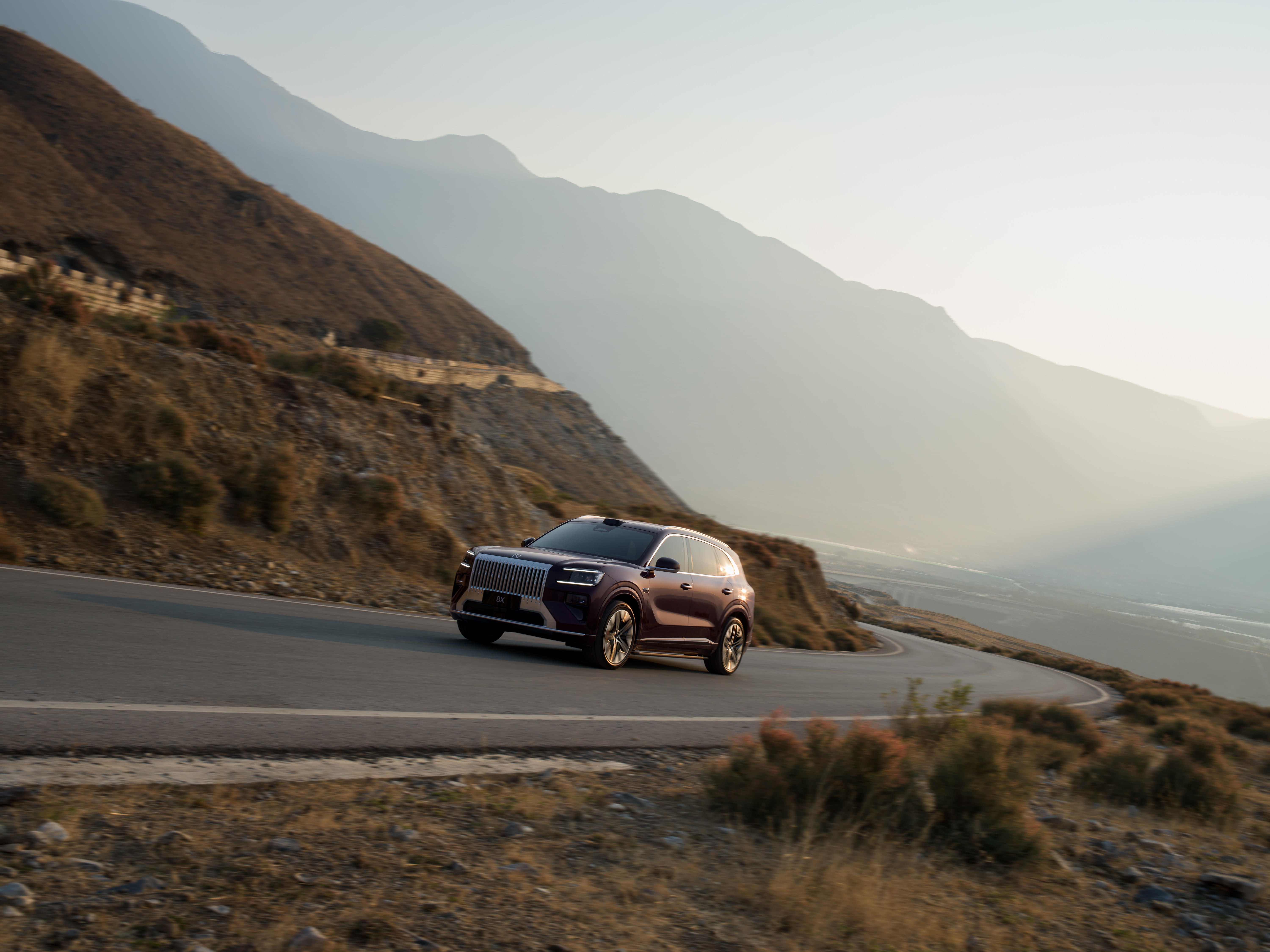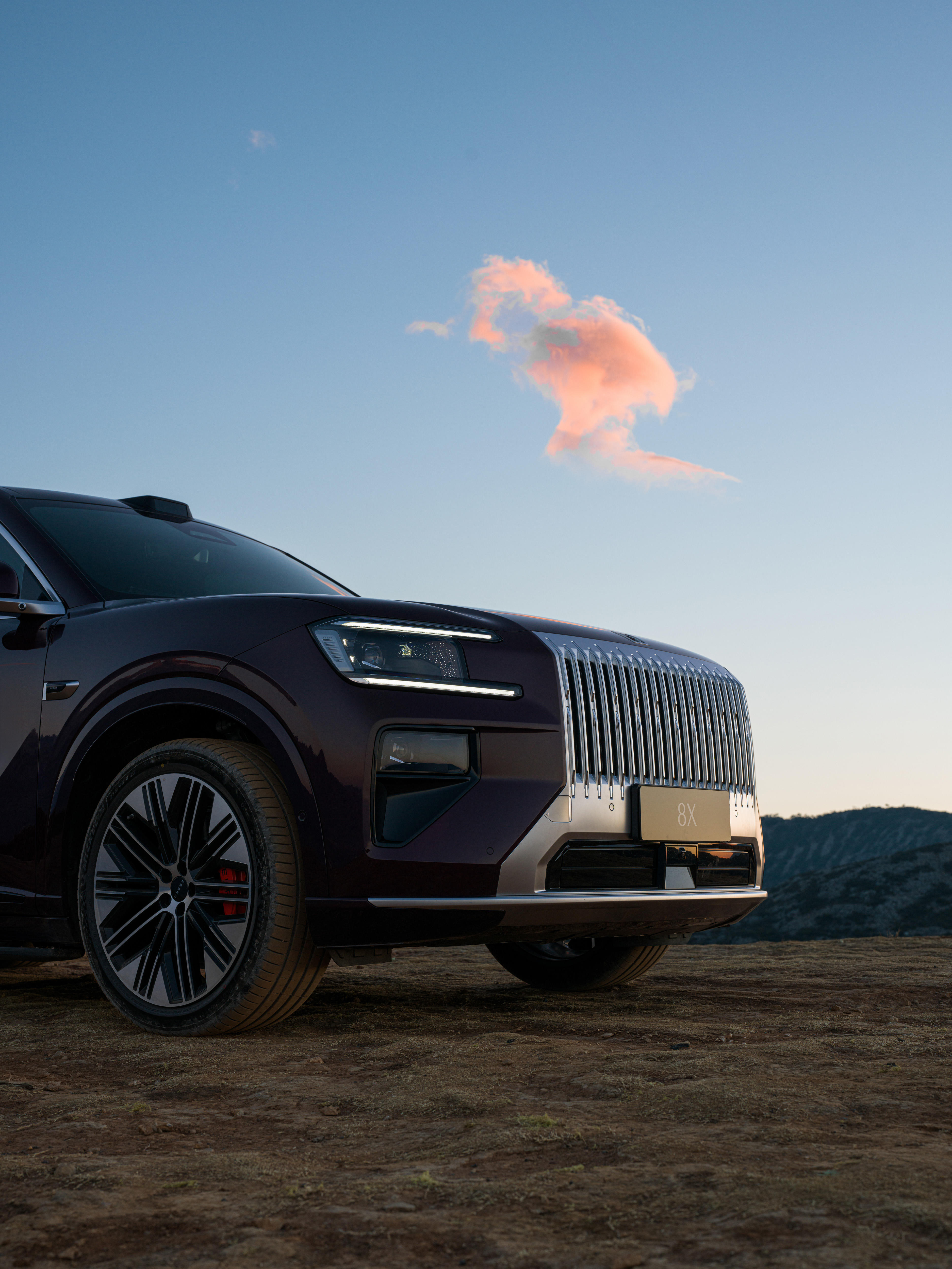 一如所料,车身色彩在日光流转间,每时每刻都呈现出不同的质感。光线微弱时,它是内敛的暗红,如低语者聆听山野;朝阳渐升,暗红泛起细腻珠光,化作红宝石般璀璨光泽,呼应大地苏醒,如玫瑰悄然绽放。这般惊艳,让人忍不住屏息,轻轻按下快门,将瞬间定格为永恒。