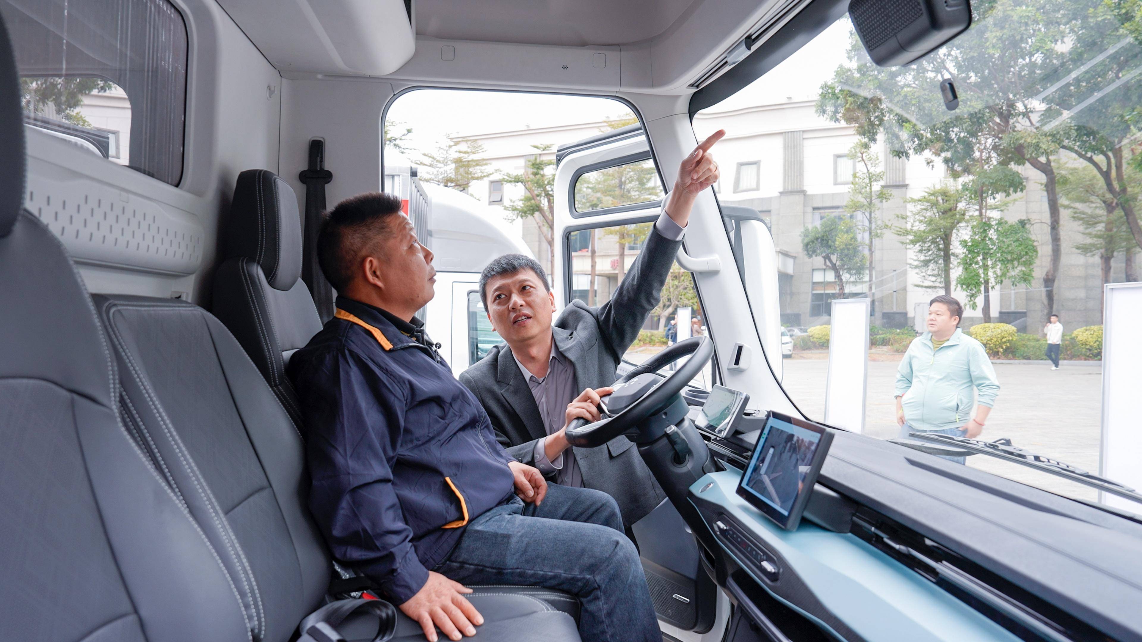 另外,坐姿参考MPV乘用车型设计,包裹式气囊座椅久坐不累,方向盘和座椅均支持多向调节。这种以驾驶员为中心的设计思路,将“舒适运营”提升到与“高效运营”同等重要的地位,让物流装备从单纯的运输工具转变为司机的“移动办公室”和“临时休息站”。