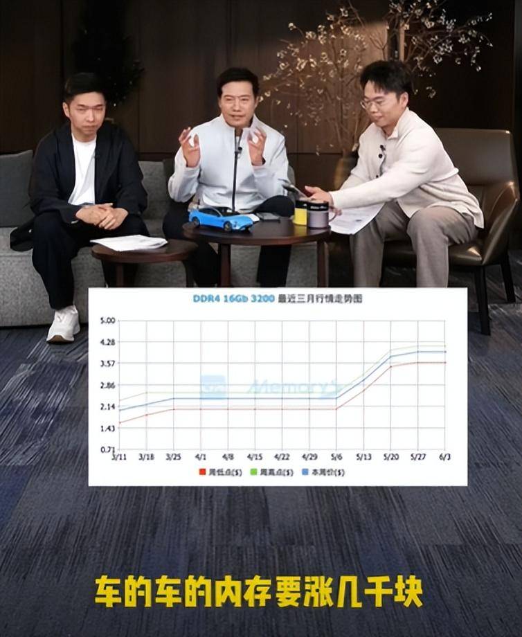 小米汽车CEO雷军在直播中提到新款小米SU7价格时表示:“现在内存涨价是按季度在涨的,上个季度涨了40%-50%,据说1季度还要继续涨,按照这个趋势,今年光车的内存就要涨几千块钱。”