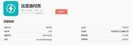 另有用户留意到,比亚迪闪充 App 已登陆主流安卓应用商店上架,预计将作为闪充 2.0 的配套服务产品同步亮相。