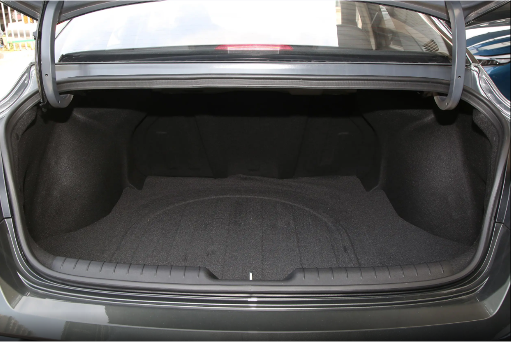 后备厢常规状态下的装载能力非常不错,20/24/28英寸的行李厢都能放入,还留有一定纵深来放其他物品。不过其内部规则度确实稍差,可以看到靠内侧有一个横梁,这让它里面的高度比外面差了8cm左右。除了顶配车型,其余配置均不支持将后排放倒。