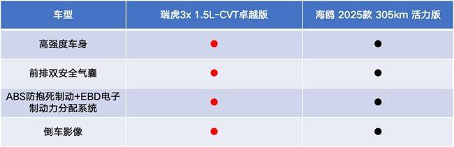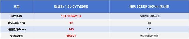 问题随之而来,携家带口、满载年货加上车多路堵,对座驾提出了更高的考验。今天,我们就聚焦自驾场景,对比两款备受年轻人追捧的热门小车:奇瑞瑞虎3x 1.5L-CVT卓越版(以下简称:瑞虎3x卓越版)和海鸥 2025款 305km 活力版(以下简称:海鸥),看谁更值得入手?