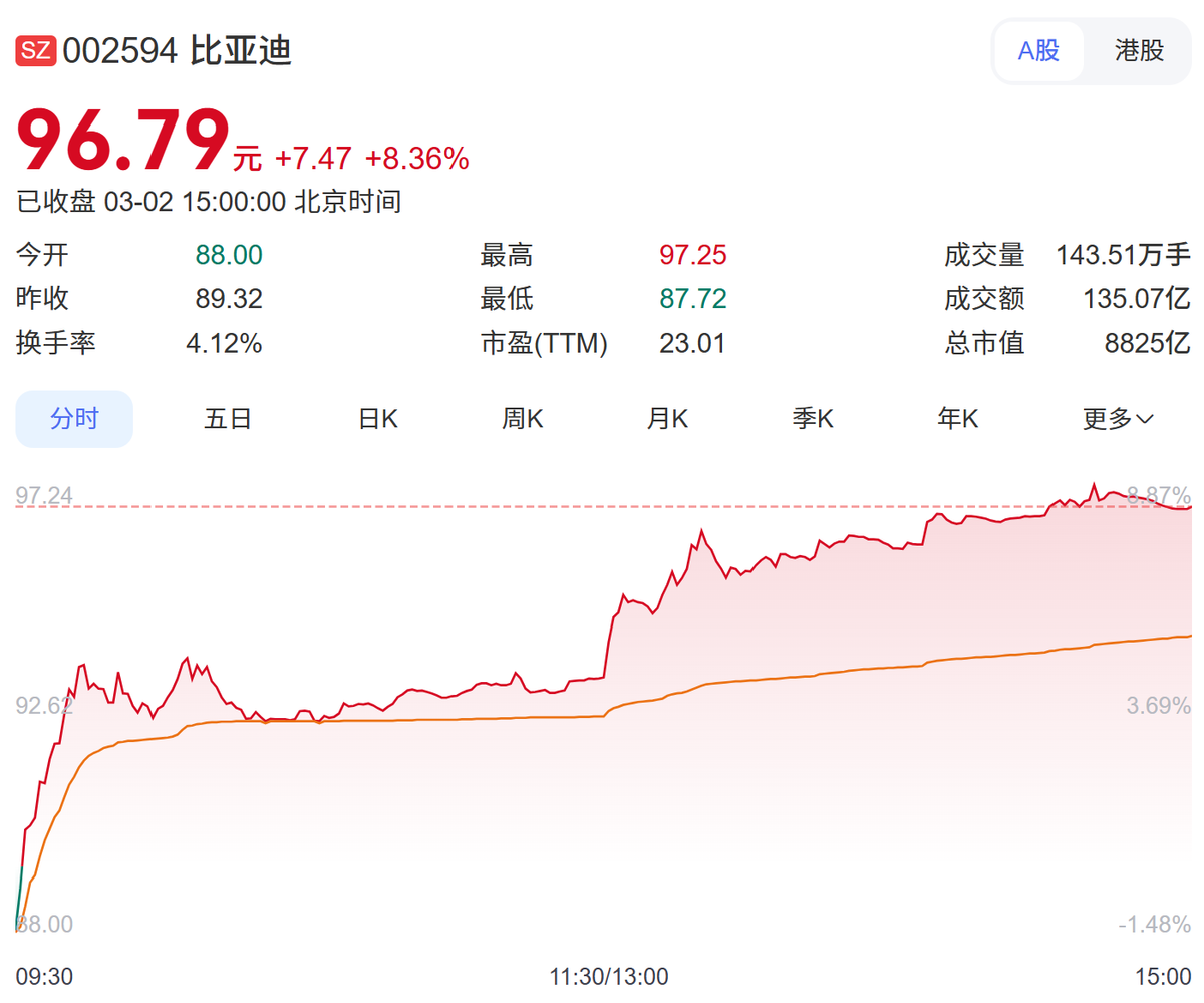 3月2日,比亚迪A股股价大涨超8%,市场热情被一则官方消息点燃:比亚迪确认将于2026年3月5日召开一场“颠覆性技术发布会”。