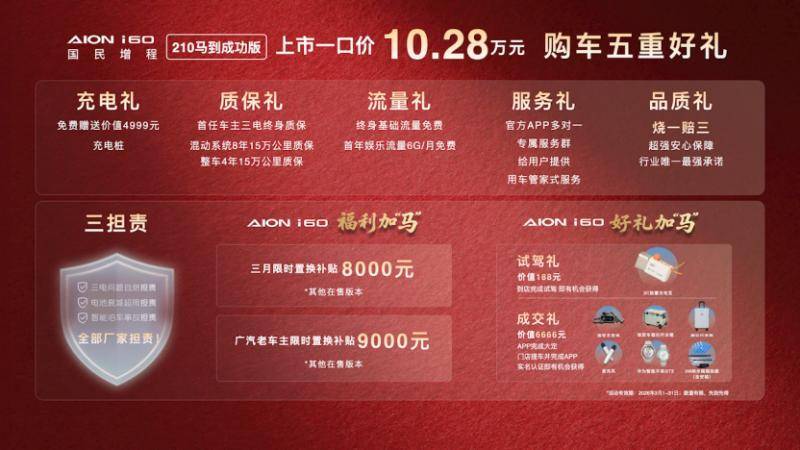 埃安i60马到成功版的推出,把这一逻辑推向了极致。10.28万的售价,配上210km纯电续航、1240km综合续航、3C快充、五连杆后悬、弹匣电池......这些两年前还是20万级“豪华套餐”的配置,如今被埃安做成了国民标配。而埃安i60其他在售版本,也同步加码了权益,3月份限时置换补贴8000元,广汽老车主更是高达9000元,诚意十足。