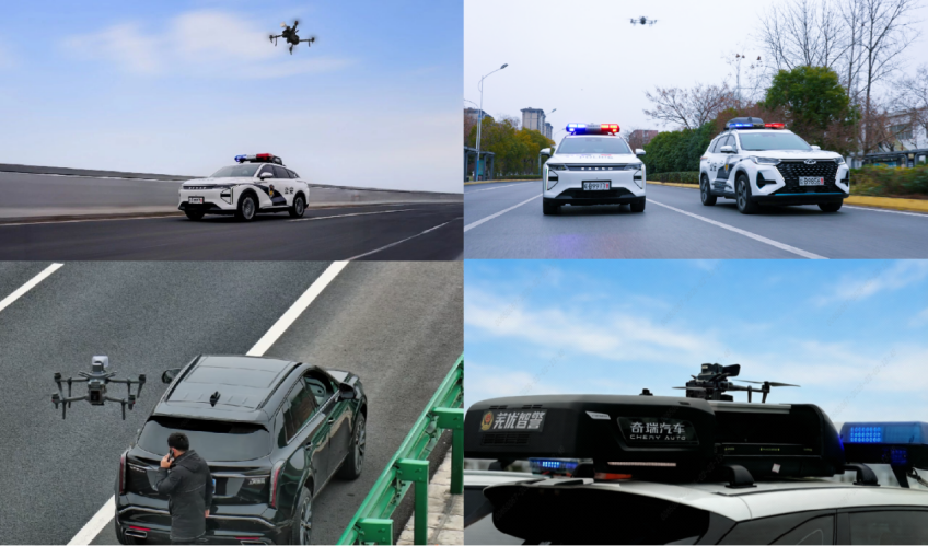 奇瑞具身智能产品深度融入社会生活。墨甲人形机器人化身春运志愿者,在芜湖站为旅客提供指引和咨询服务,登上芜湖春晚舞台与演员互动表演,更作为“记者”亮相安徽省“两会”现场采访代表,成为科技话题焦点。与此同时,奇瑞与芜湖公安联合打造的 “芜优智警U001”车载无人机正式上岗,构建“空中+地面+网络”三位一体智慧巡防体系,全方位护航春运安全。