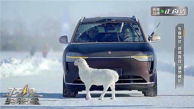 本次挑战引人注目的是,在AEB静止羊、探头羊挑战中,测试团体使用了“静止羊”与“探头羊”作为目标物,摒弃行业通用的假车、假人模型。在能见度极低的雪雾环境中,问界M9搭载的192线激光雷达展现出极强的微小目标捕捉能力。面对“雪面静止羊”,车辆以50km/h时速精准刹停;面对突然窜出的“雪面探头羊”,30km/h时速下依然稳稳停下。而在终极“雪雾静止羊”挑战中,白色羊只几乎与背景融为一体,问界M9仍以25km/h的速度成功规避。这证明了在多传感器融合感知下,系统已从“被动响应”进化为“主动预判”,将人类的反应盲区转化为系统的安全冗余。