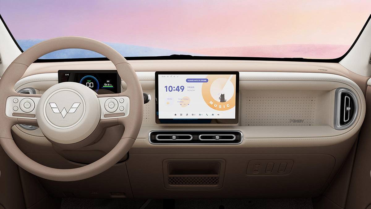 五菱宏光MINIEV是五菱旗下的一款微型电动车,上市五年多来其销量已经超过了190万台,前几天,五菱发布了新一代宏光MINIEV的外观图,近日其内饰图也正式发布了。