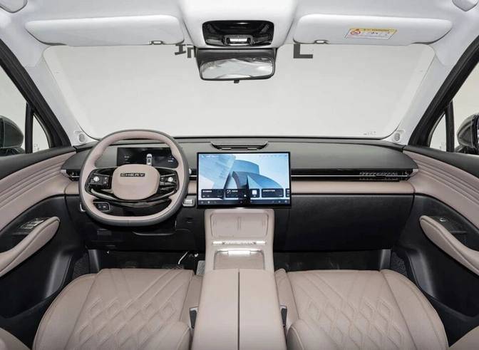 内饰部分延续家族化设计风格,配备全液晶仪表与大尺寸中控屏,通过大幅缩减物理按键,强化座舱科技氛围。环抱式座舱采用大面积软性材质包裹,搭配琥珀棕内饰色调,营造出浓郁的高级质感。