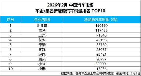 2026年开局,中国新能源汽车市场竞争格局进一步明朗。根据车企及上市公司对外披露的数据,比亚迪集团2月新能源汽车销量达190190辆,再度位居行业首位,在主流车企中持续保持明显领先优势,以稳定而强劲的表现巩固头部地位。