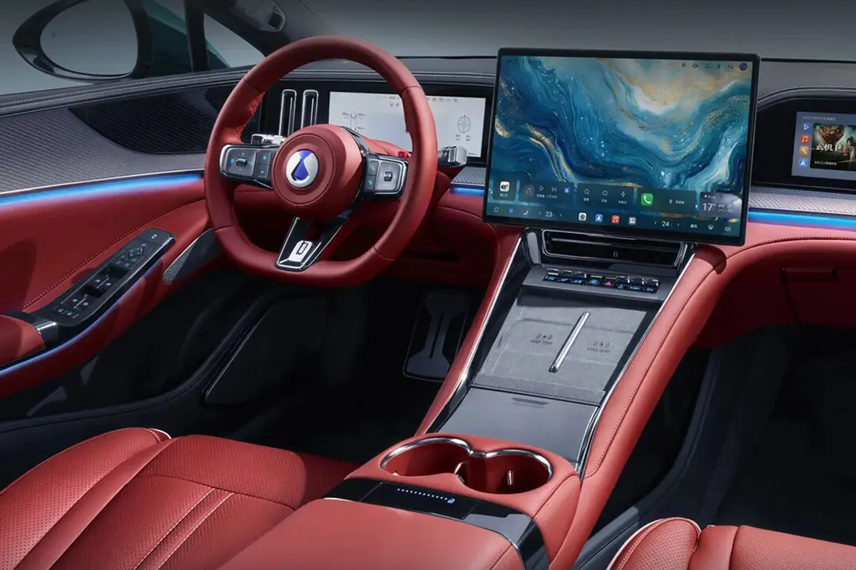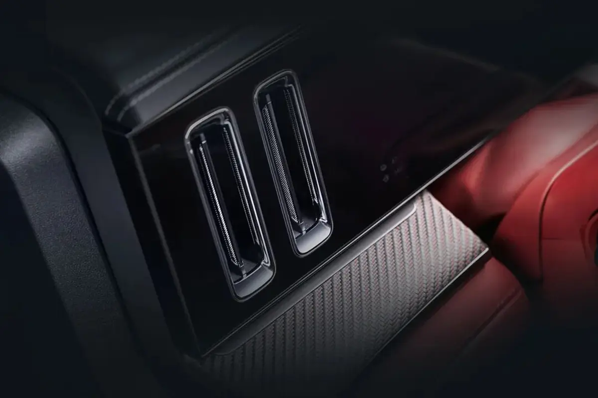 此次全新腾势Z9GT将现款在售车型上的四幅式方向盘更换为更加运动的三幅式多功能方向盘,同时中央副仪表区域电子挡把也被取消,更换为质感十足的金属电子怀挡,同时针对中央副仪表区域功能按键位置进行一定调整;当然大家吐槽最多的出风口也进行调整,由原本横置更换为纵置布局,并且出风口周围还增加镀铬饰条从而提升质感,车内操作台以及门板多处饰板也被更换为碳纤维材质饰板。