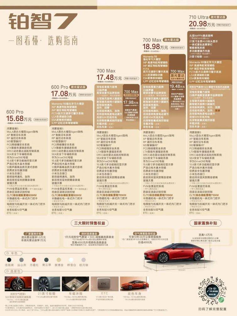 这份终极确定性,首先体现在极具诚意的价格与三大限时权益上。铂智7此次推出五大版本,以阶梯式配置组合覆盖不同用户的多元需求,每一款都在同价位段树立了全新的价值标杆。