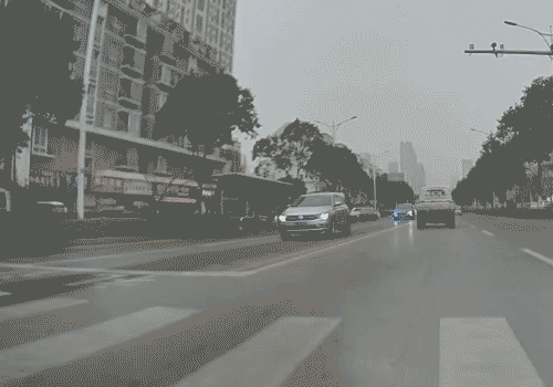黑色SUV刹车避让,白色轿车正常行驶。