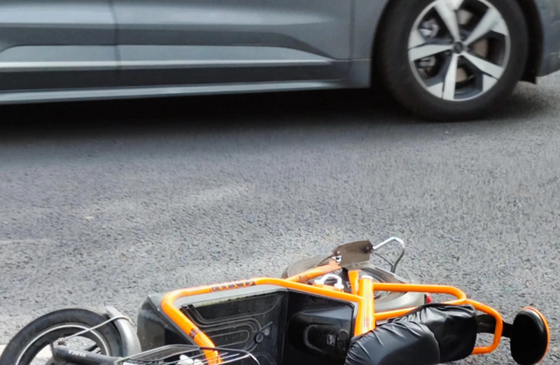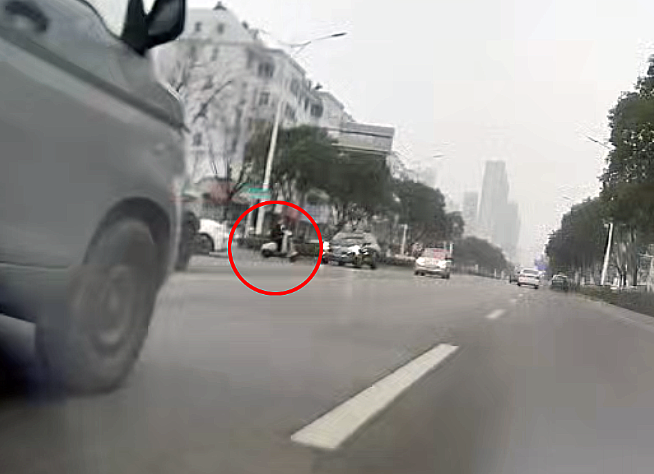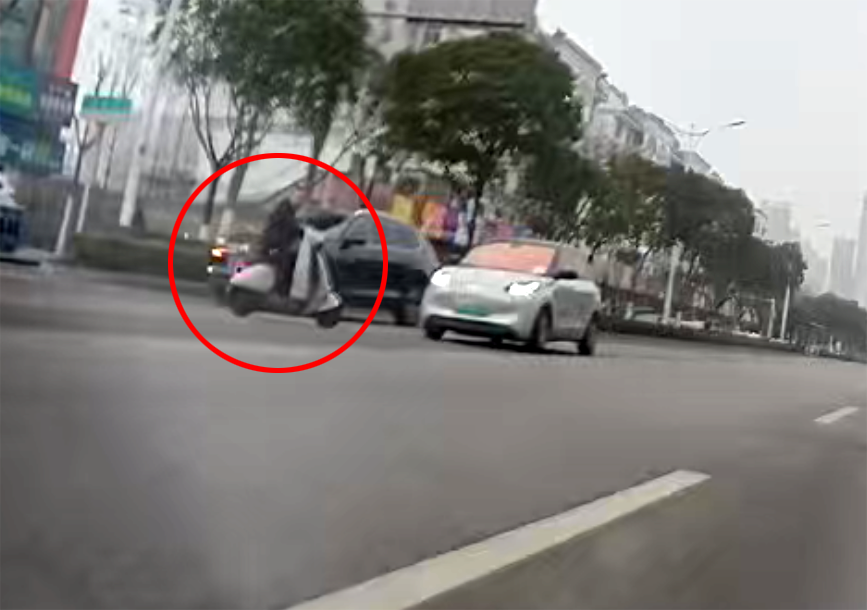 而电动车却径直撞上白色轿车的后方,据视频拍摄车司机描述,碰撞导致该电动车一车轮脱落,司机显然会受伤。