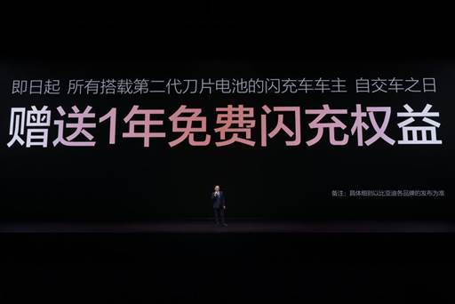 发布会现场,王传福还宣布:所有搭载第二代刀片电池的闪充车车主,均享有重磅“闪充权益”,自交车之日起,在全国闪充站可享受1年的免费闪充权益,让闪充体验更畅快。并且,在闪充免费期结束后,也会同行业保持一致,不会额外收费。仰望、腾势和方程豹新车型搭载第二代刀片电池及闪充技术。