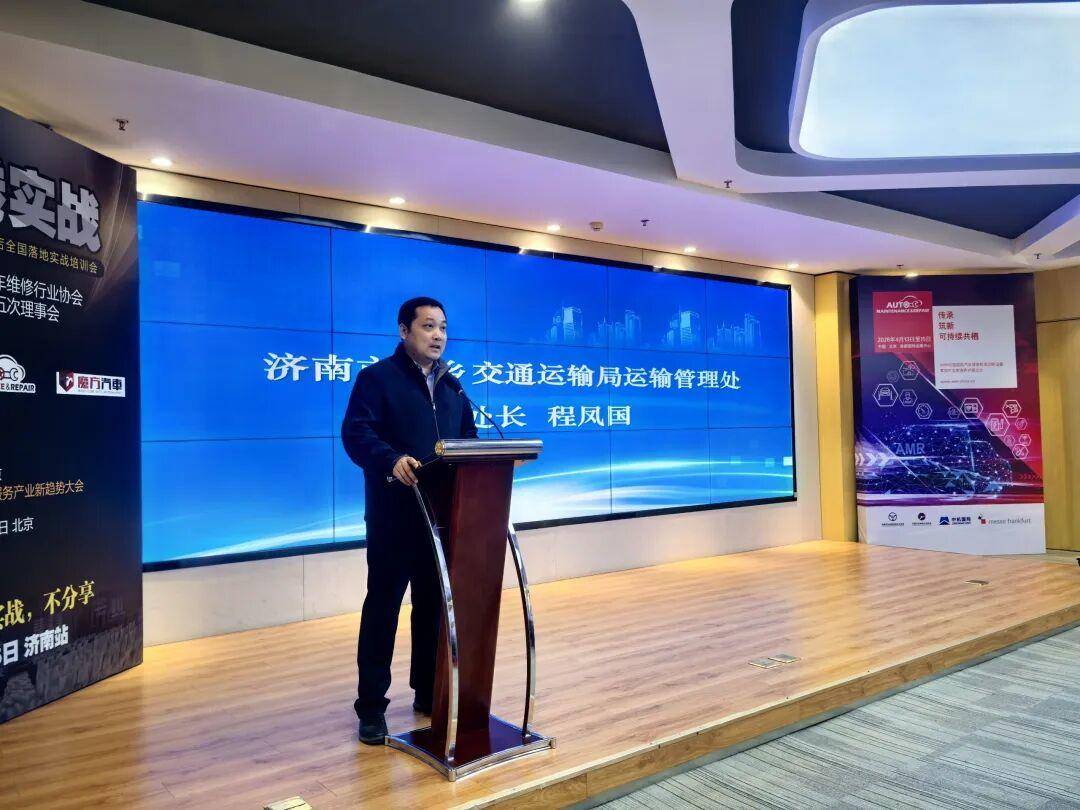 随后,济南市城乡交通运输局运输管理处程凤国处长代表行业主管部门致辞,他对本次全国性启动仪式落地济南表示热烈欢迎,并强调,汽车维修服务质量直接关系到人民群众的出行安全与切身利益,行业主管部门将持续强化监管、优化服务,与协会、企业一道,共同推动济南乃至全国汽车维修行业服务水平再上新台阶。