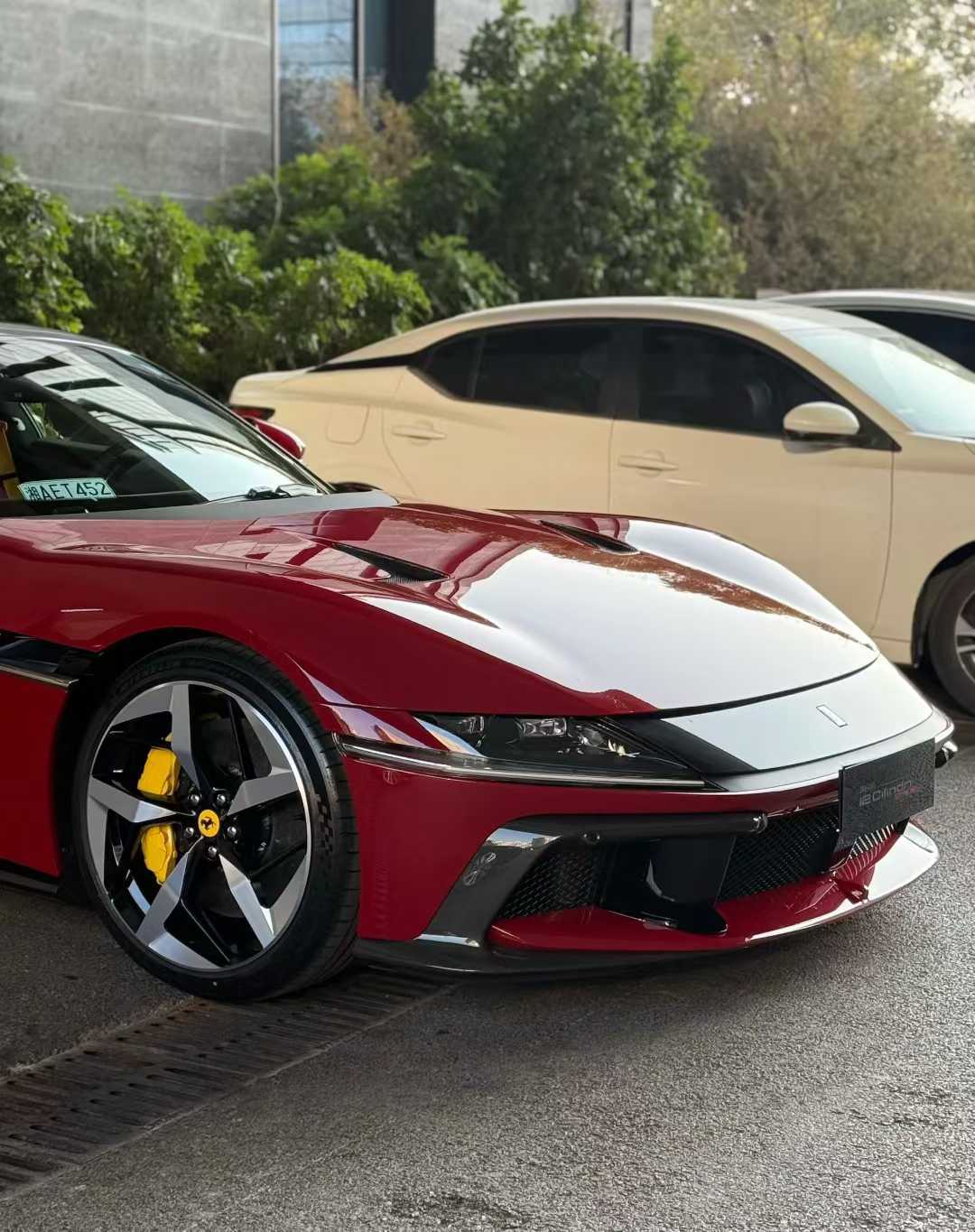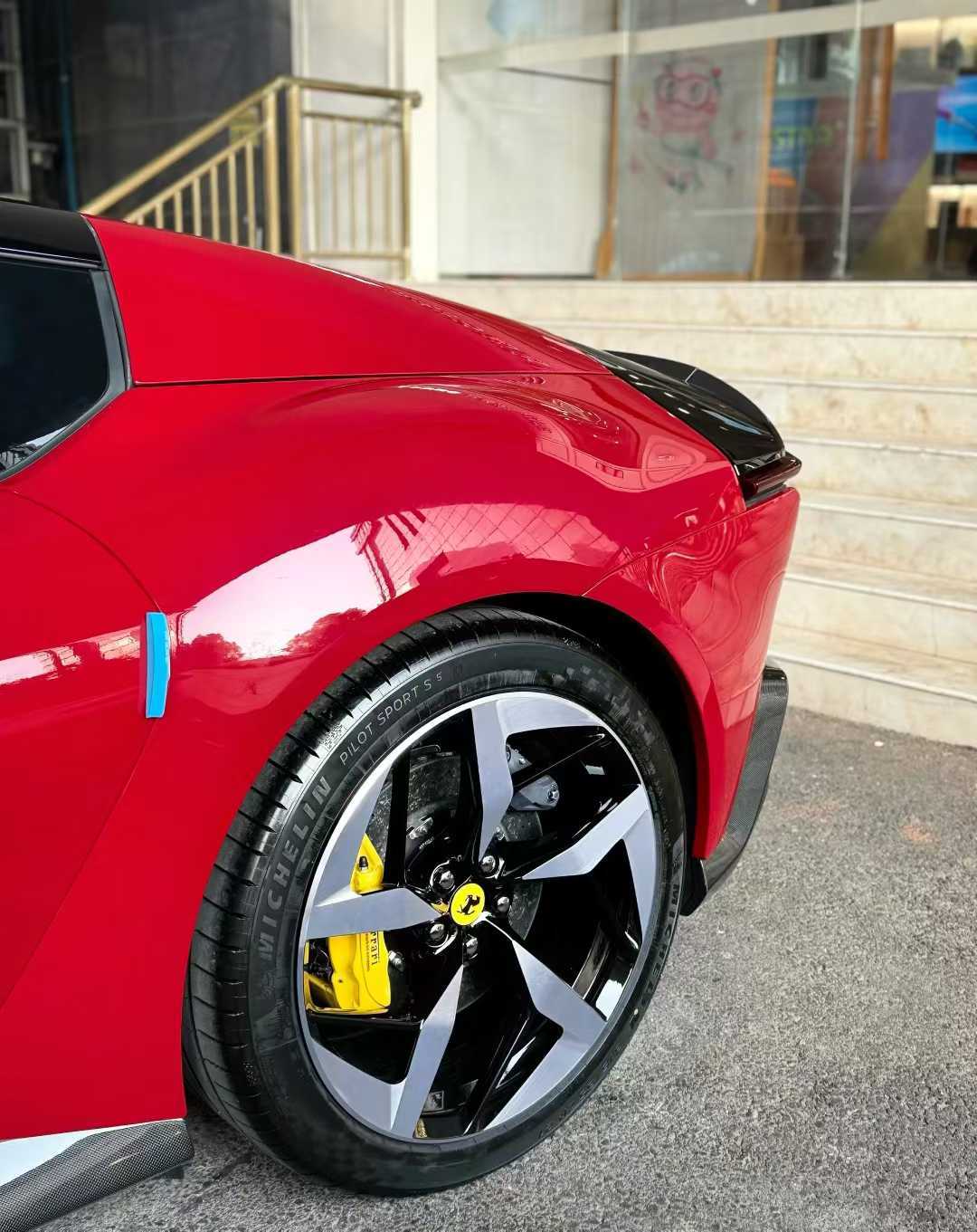 引擎的轰鸣尚未响起,仅仅是对视的那一眼,我便感受到了它血脉中奔涌的热浪。眼前的这台法拉利12Cilindri Spider,静静停在那里,像一匹蓄势待发的神骏,披着一身穆杰罗红的战袍。那红色,并非寻常的明艳,而是浸透了托斯卡纳艳阳的深邃,是赛道上一骑绝尘后的炽烈。车身上,每一处碳纤维组件都闪烁着冷峻的光,与温暖的漆色形成奇妙的对峙,仿佛理性与激情在无声地对话。而那套钻石抛光轮毂,在光影流转间,折射出细碎而璀璨的光芒,像是梦想被研磨成粉,又小心翼翼地镶嵌其上。